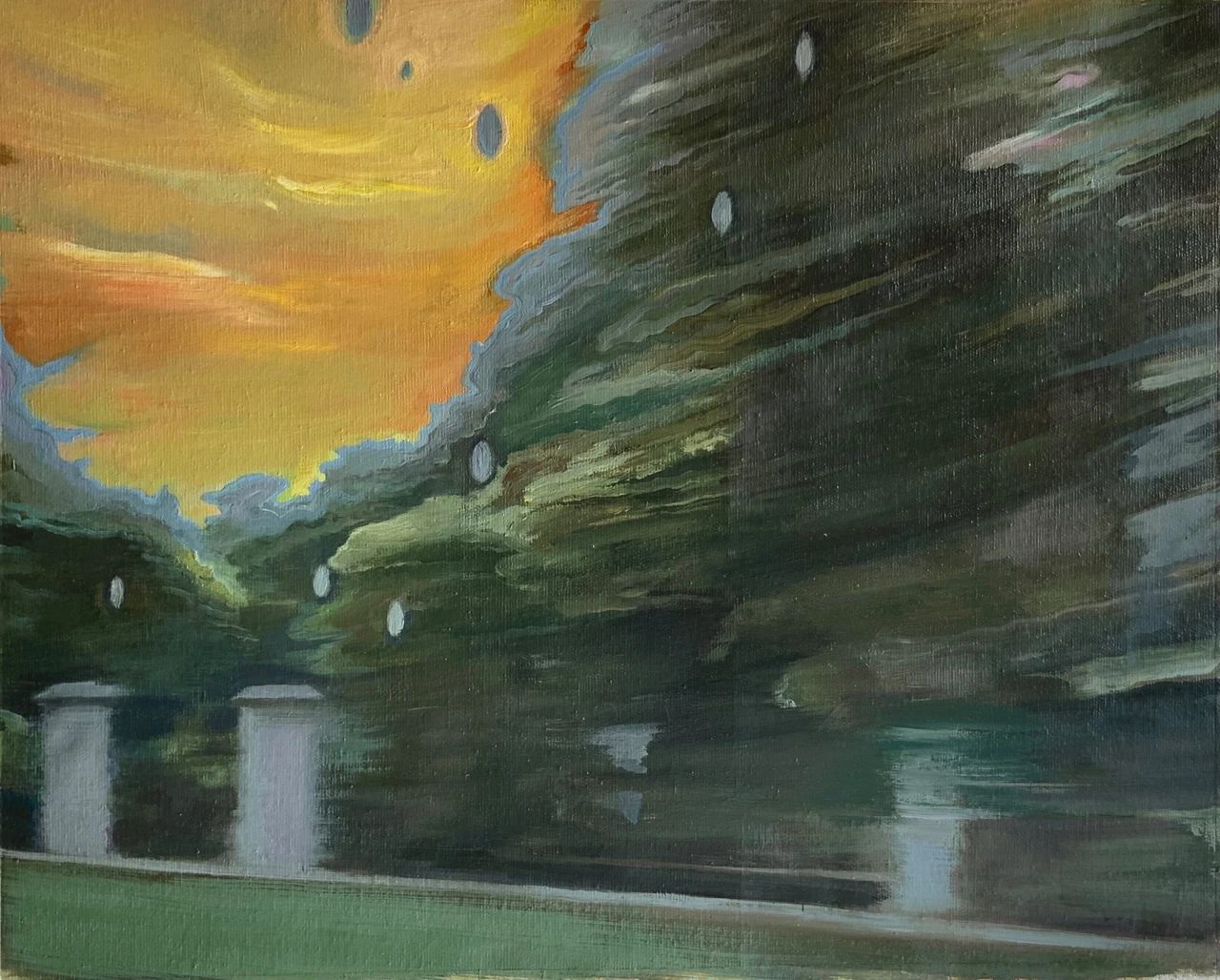 Картина выполнена маслом на холсте. Контролируемая пластичность масляной краски важна для художницы тем, что оставляет пространство для непредсказуемости, позволяя образу «случаться» в процессе. Также благодаря свойствами масляной краски изображение формируется постепенно, позволяя обнаруживать новые состояния и усиливать выразительность образа.