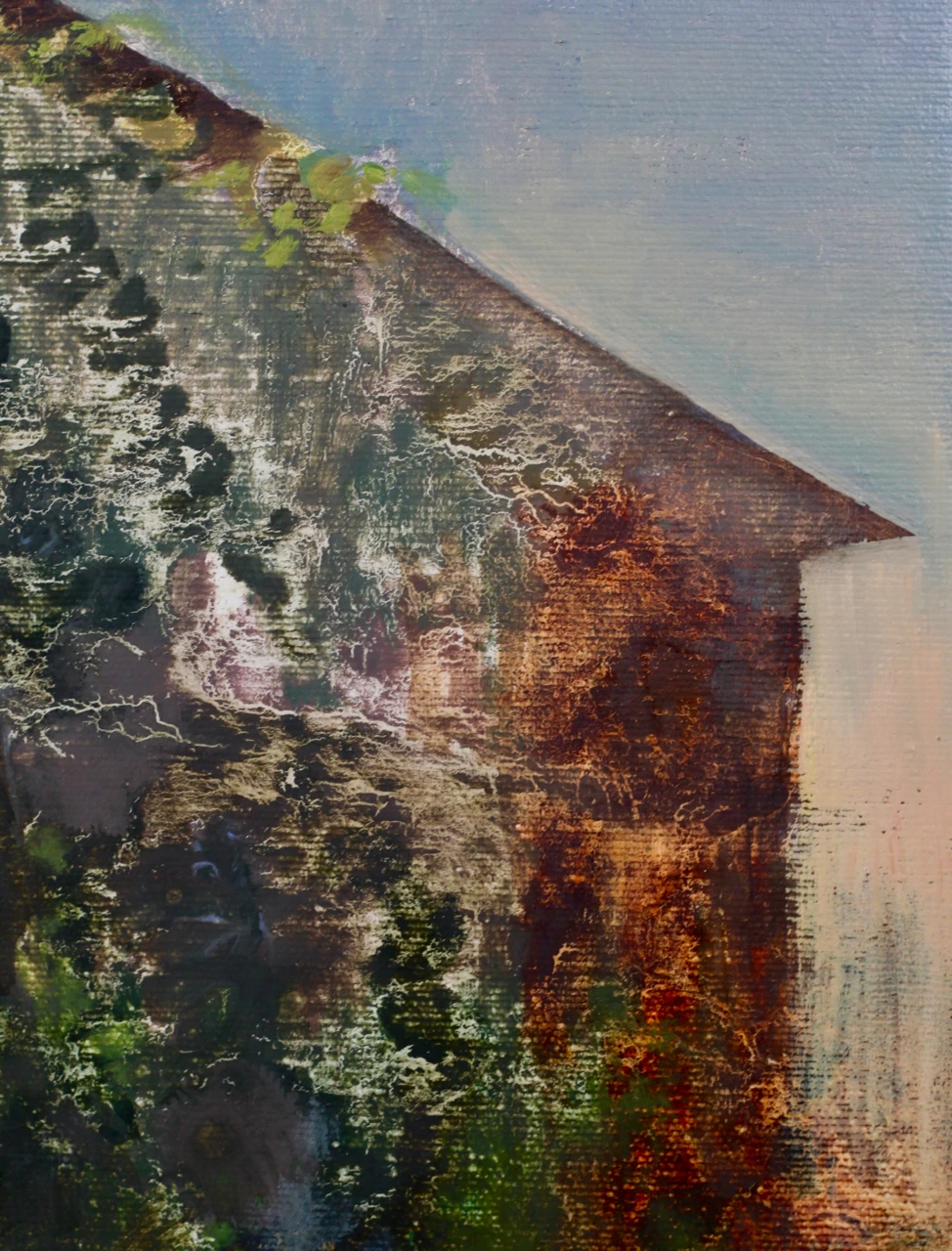 В этой работе Марина Горбунова передаёт ощущение покинутого пространства, где следы человеческой жизни растворяются, уступая место природе. Эта работа про мир без свидетелей. Дома зарастают травой, словно оставшиеся после гибели человечества. Пространство медленно возвращается к природе. Сумеречный свет делает этот переход тихим и неизбежным.