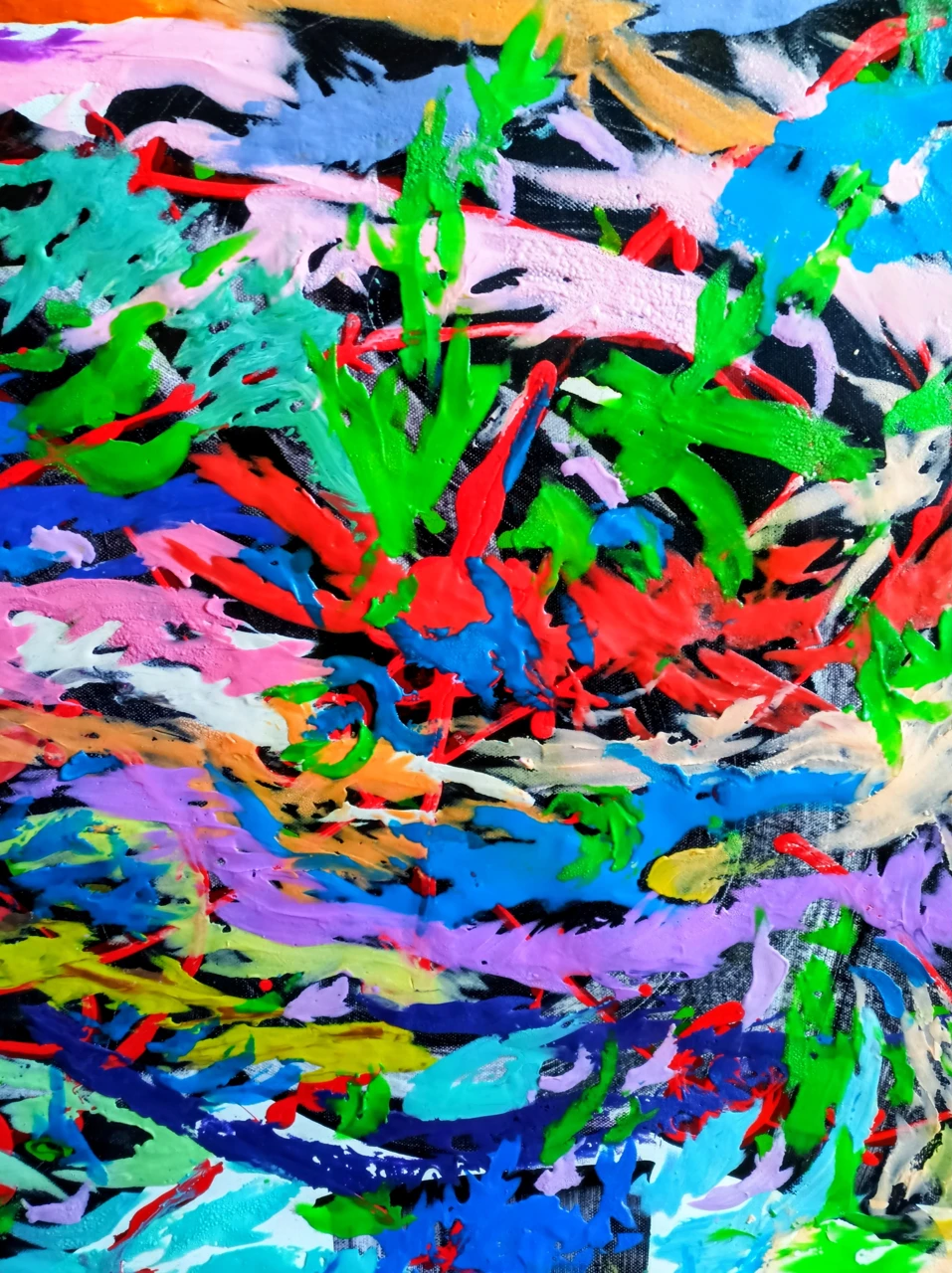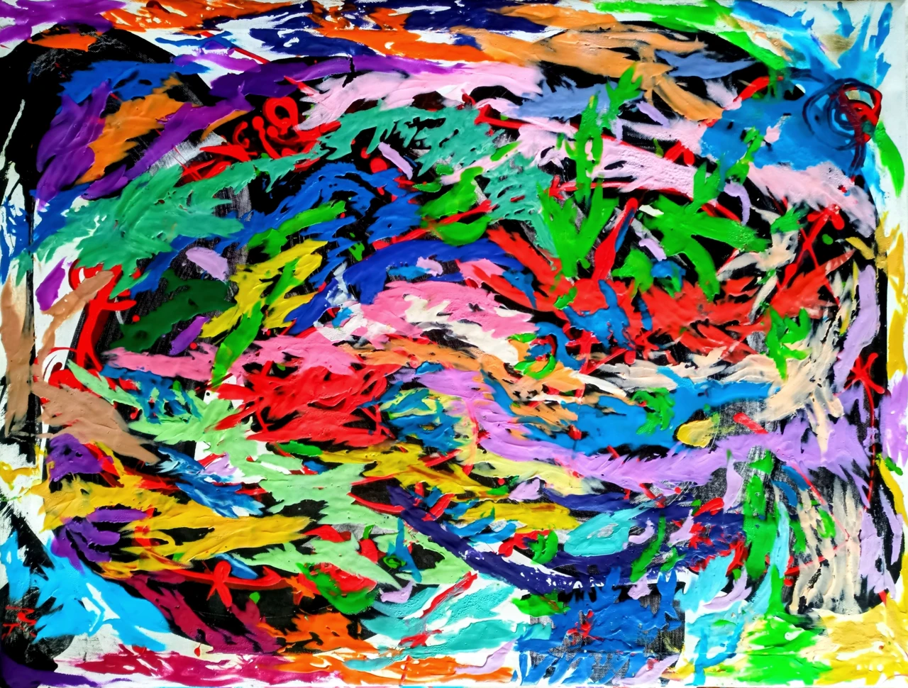 Сочетание энергии и экспрессии с намёком на узнаваемый образ. Абстрактность фона позволяет зрителю сосредоточиться на силуэте хорька, при этом яркие цвета и динамичные мазки создают ощущение движения и жизни. Работа может восприниматься как эксперимент с формой и цветом, где реальный объект (хорёк) становится частью абстрактного мира.