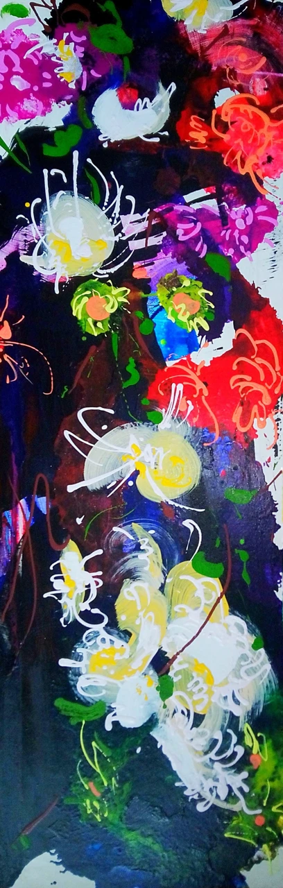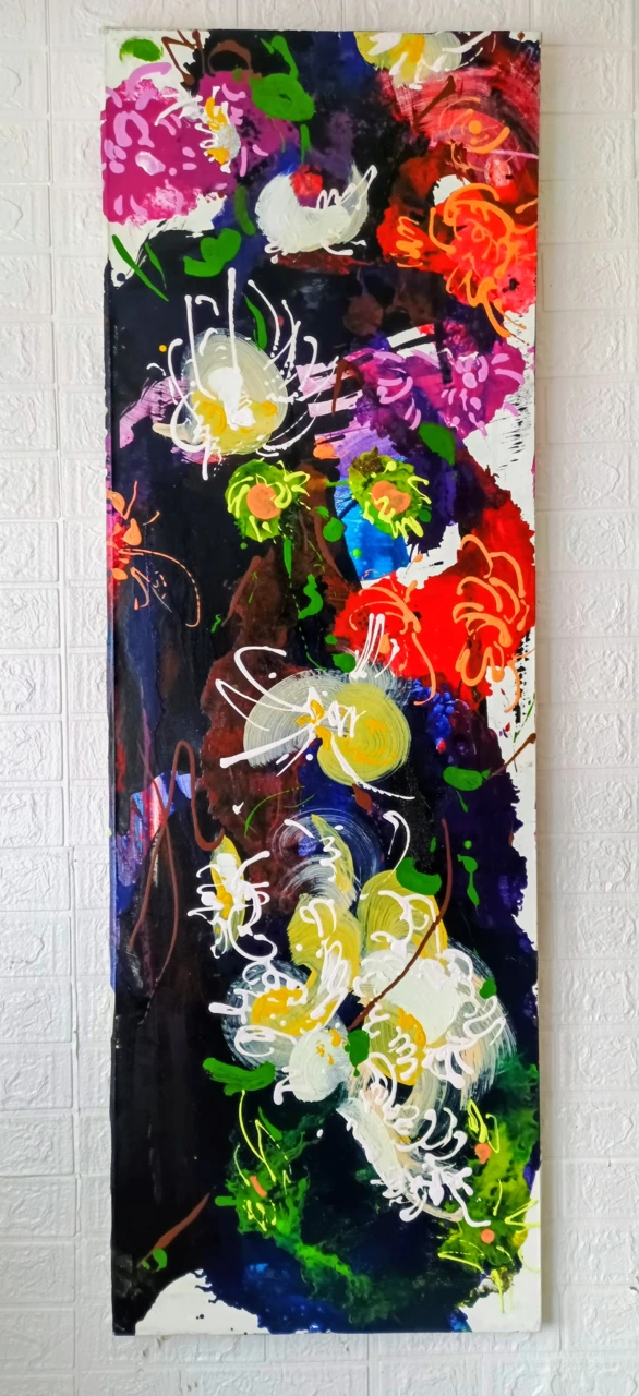 Эта авторская работа, отличающаяся смелой цветовой палитрой и энергичной техникой, станет выразительным арт-объектом для интерьера, добавив ему современное и динамичное звучание. Размер холста 150 x 49 см позволяет ей стать центральным элементом в просторном помещении.