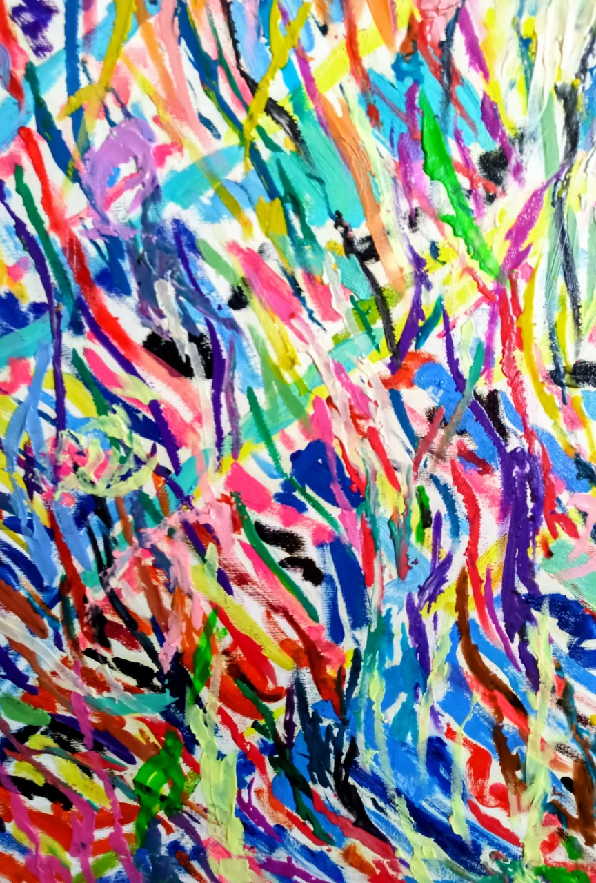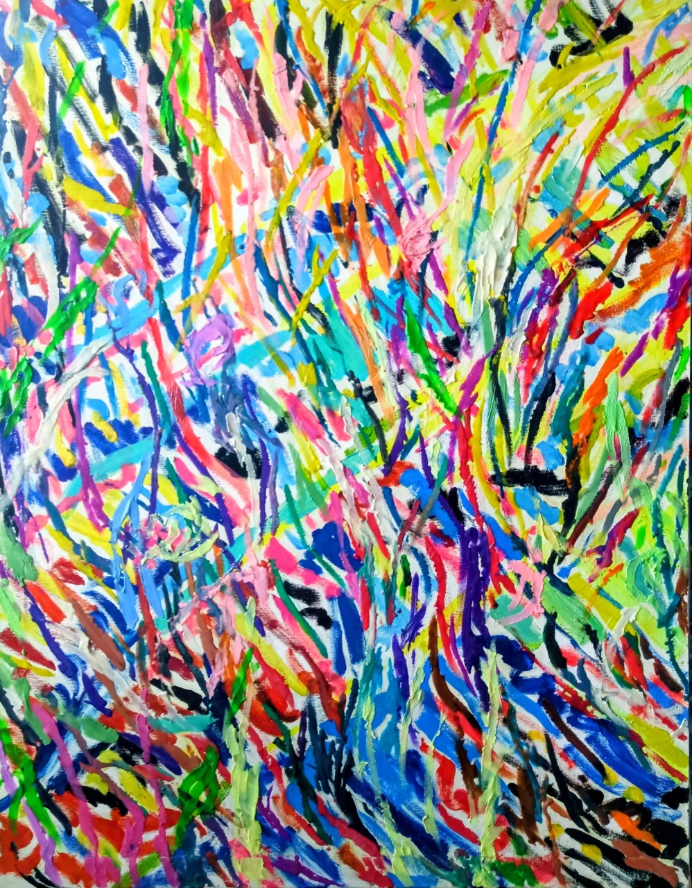 Хаос и многообразие — мысли человека часто неупорядоченны, мелькают как вспышки, переплетаются между собой. Разнообразие цветов подчёркивает богатство внутреннего мира, множество эмоций и идей, сложность и многогранность, где мысли и эмоции переплетаются в красочный, но порой неуловимый узор.
