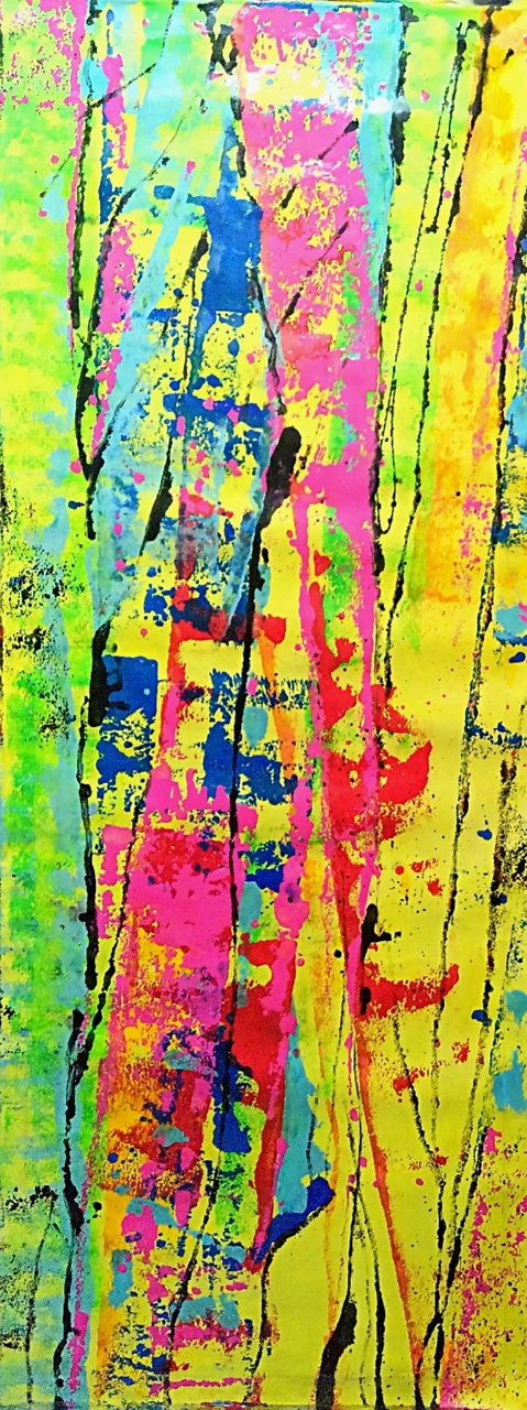 Розовая бита на картине — это не просто предмет, а метафора времени и субкультуры. Она воплощает противоречивость 90-х: за яркой, «романтической» оболочкой скрывается глубокий внутренний конфликт, поиск идентичности. Розовая бита в контексте этой абстрактной работы становится мощным символом двойственности эпохи 90-х — времени, которое внешне казалось «романтическим» (благодаря яркой эстетике, свободе самовыражения), но внутренне было наполнено конфликтами и протестом. Это естественный, постоянный переходный этап развития человека: яркий, необычный, противоречивый, ведущий к новой внутренней гармонии. Когда эмоции сменяются ощущениями, стабилизируя наш моральный фон.