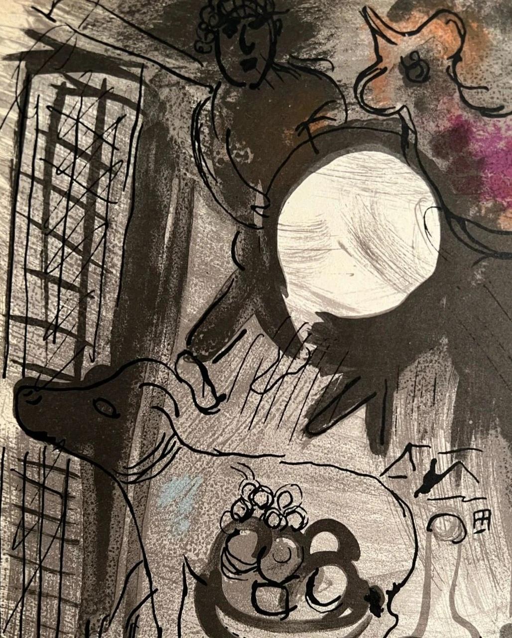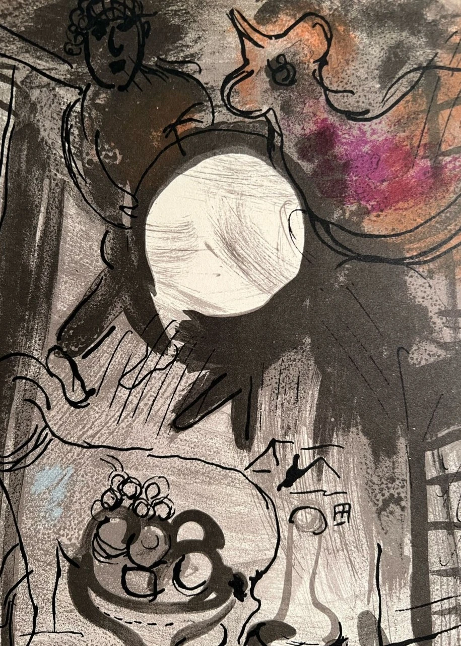 Среди мастеров живописи ХХ века Марк Шагал не был единственным, кто обратился к литографии. Но был одним из немногих, кто овладел ею в совершенстве и использовал эту печатную технику как способ самовыражения и проявления своего отношения к мирозданию. Его литографии составляют бесконечный исповедальный цикл, состоящий из серий и отдельных листов. Наделенный уникальным даром слова художник ярко и образно написал о печатной графике, как своем способе мыслить и жить. Свои гравюры мастер печатал в знаменитой парижской мастерской Фернана Мурло, при непосредственном участии известного литографа Шарля Сорлье.