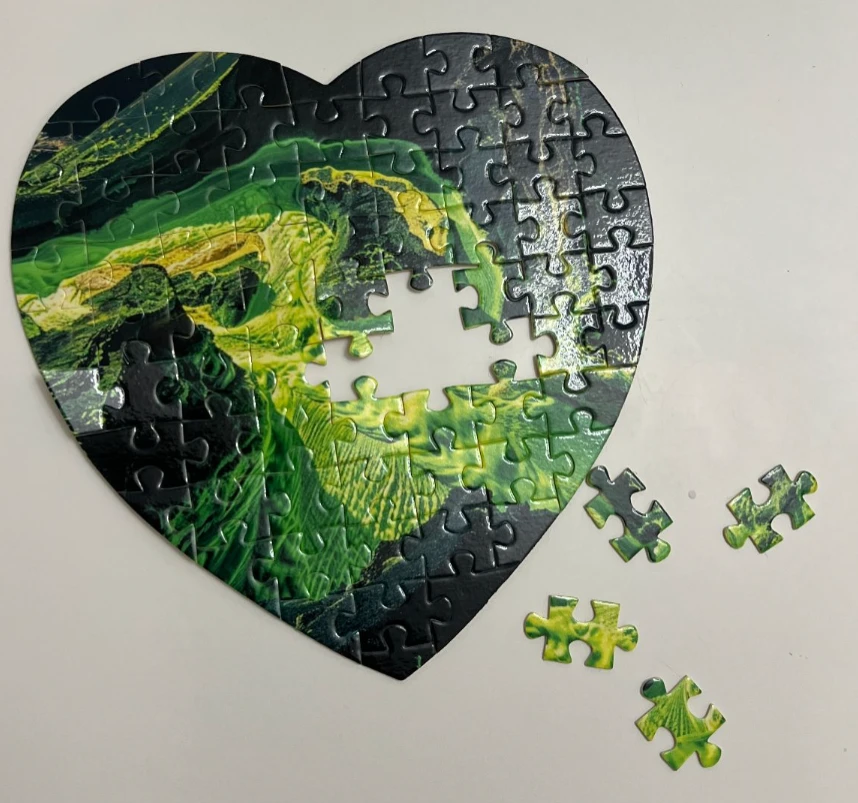 Уникальная диджитал работа в формате игры. Можно собрать и повесить на стену, а можно собирать и разбирать много раз. Несет филосовский смысл и призывает задуматься, не делать поспешных выводов. Когда встречаешь своего человека создается ощущение что паззл сошелся. Заранее неизвестно во что он сложится и как все может обернуться. Но исход зависит от нас, наших мыслей.