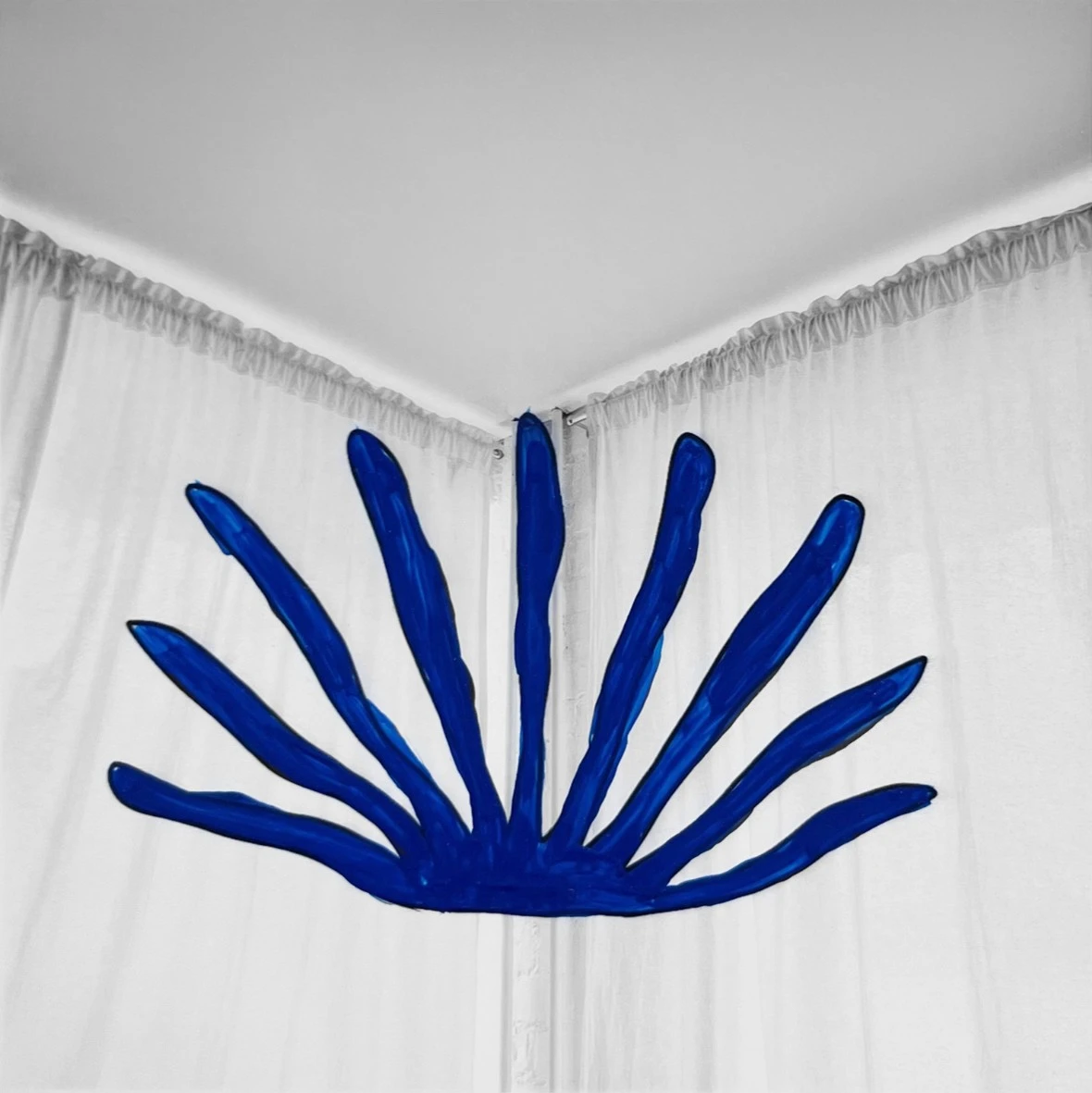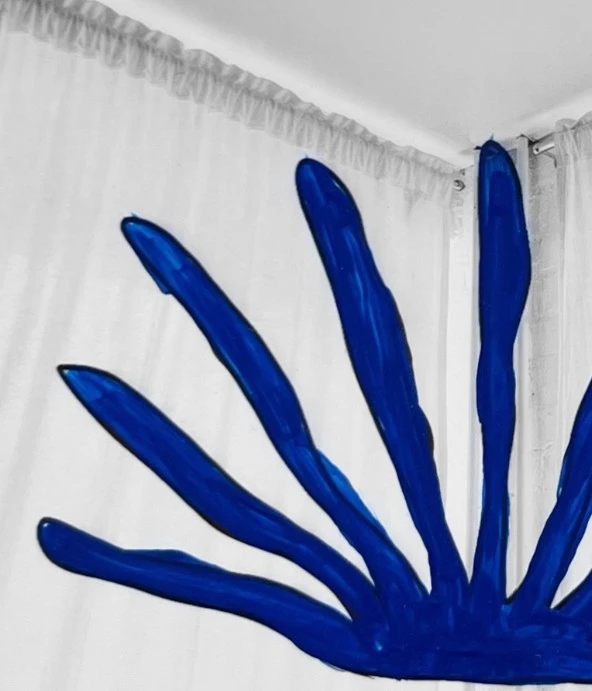 Эффект после долго дня в новом городе, когда вечером в отеле не можешь понять, видишь ли ты то, что видишь, или просто устали глаза. В работе объединены реальные архитектурные элементы с фасадов города с интерьером пространства, в котором я жила. Элементы нанесены нарочито неаккуратным методом поверх фотографии для создания эффекта неуверенности в том, что видит зритель на самом деле.
