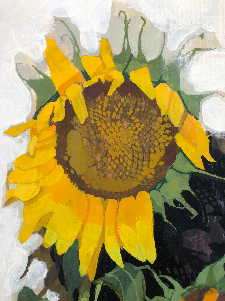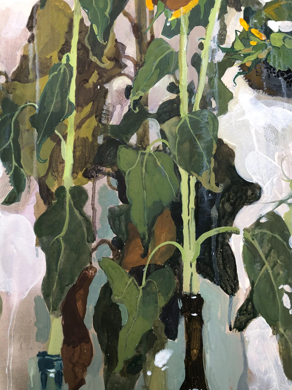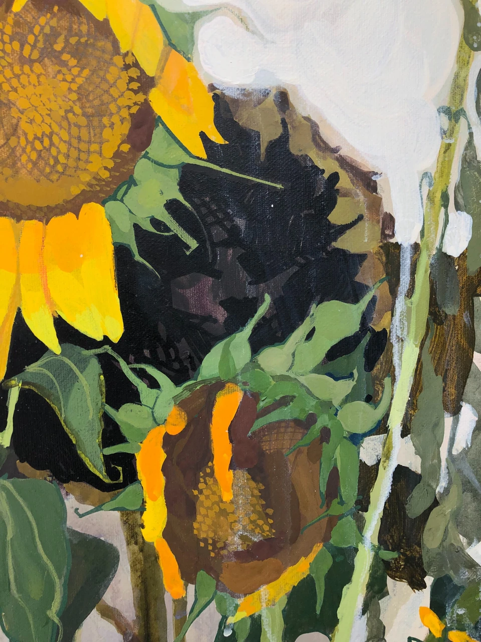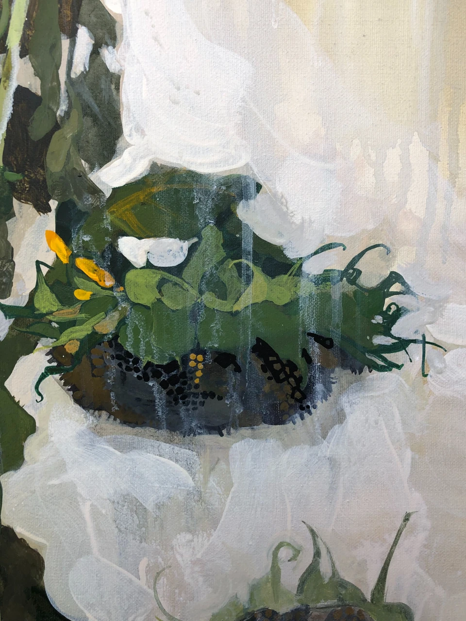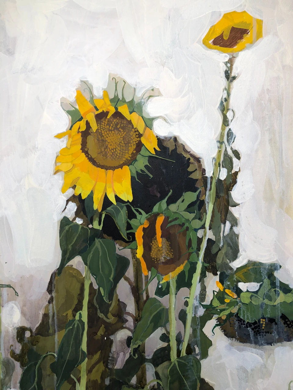 Картина написана с натуры и сочетает в себе реалистичную манеру и декоративные элементы. Благодаря этому она становится акцентным и интересным для рассматривания объектом интерьера.