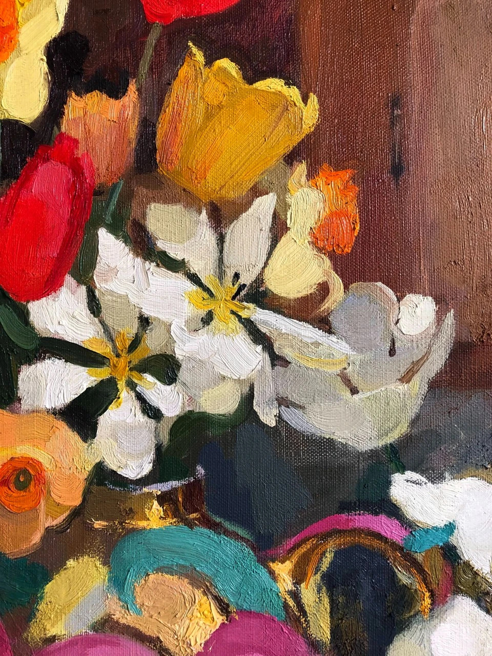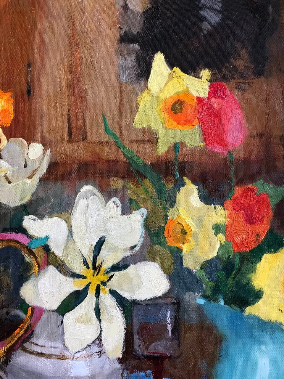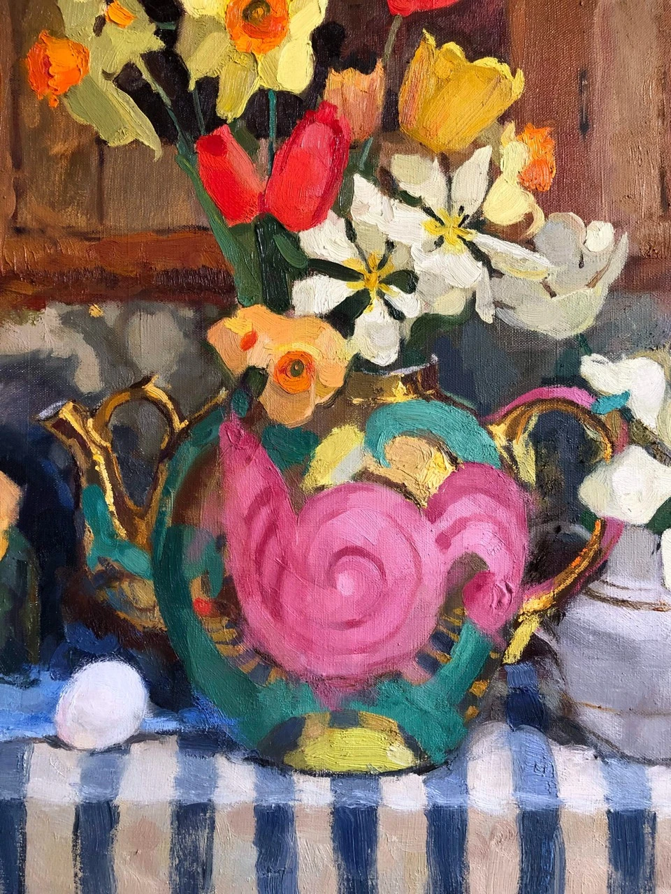 Росла я и росла мамина коллекция статуэток, сервизов и отдельных предметов. Этой серией я выражаю теплоту воспоминаний о детстве, о семье, об эстетике и маминой любви к культуре, которой она научила и меня. Эти картины о простом и понятном. О душевном. О красивом. О человеческом.