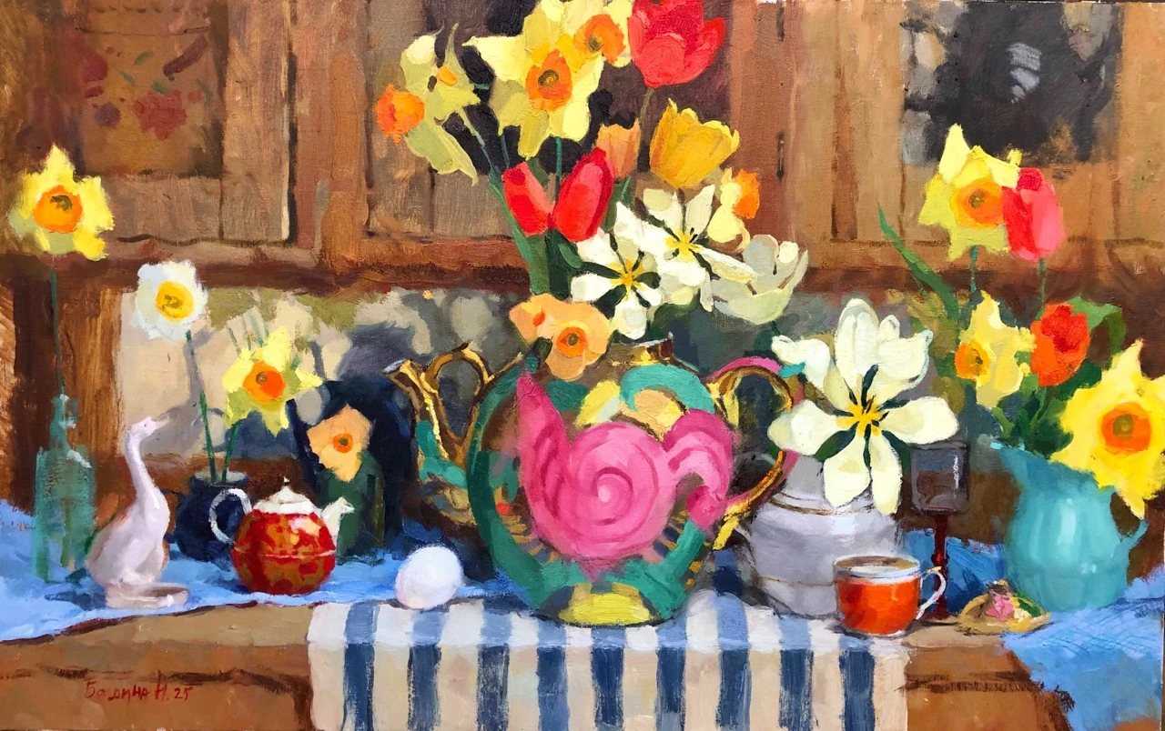 Надежда Болдина — современный художник, работающий в традиционной манере русской художественной школы. В своих работах использует разные материалы (масло, акварель, темперу, сухие материалы, тушь) и часто работает в смешанной технике.