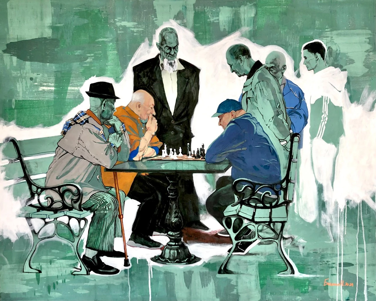 Я хотела законсервировать абсолютно простое бесхитростное явление — старички играют в шахматы в парке у моря. И я абсолютно убеждена в том, что человек становится счастливым, наблюдая как через подобные мгновения течёт жизнь и замечая её.
