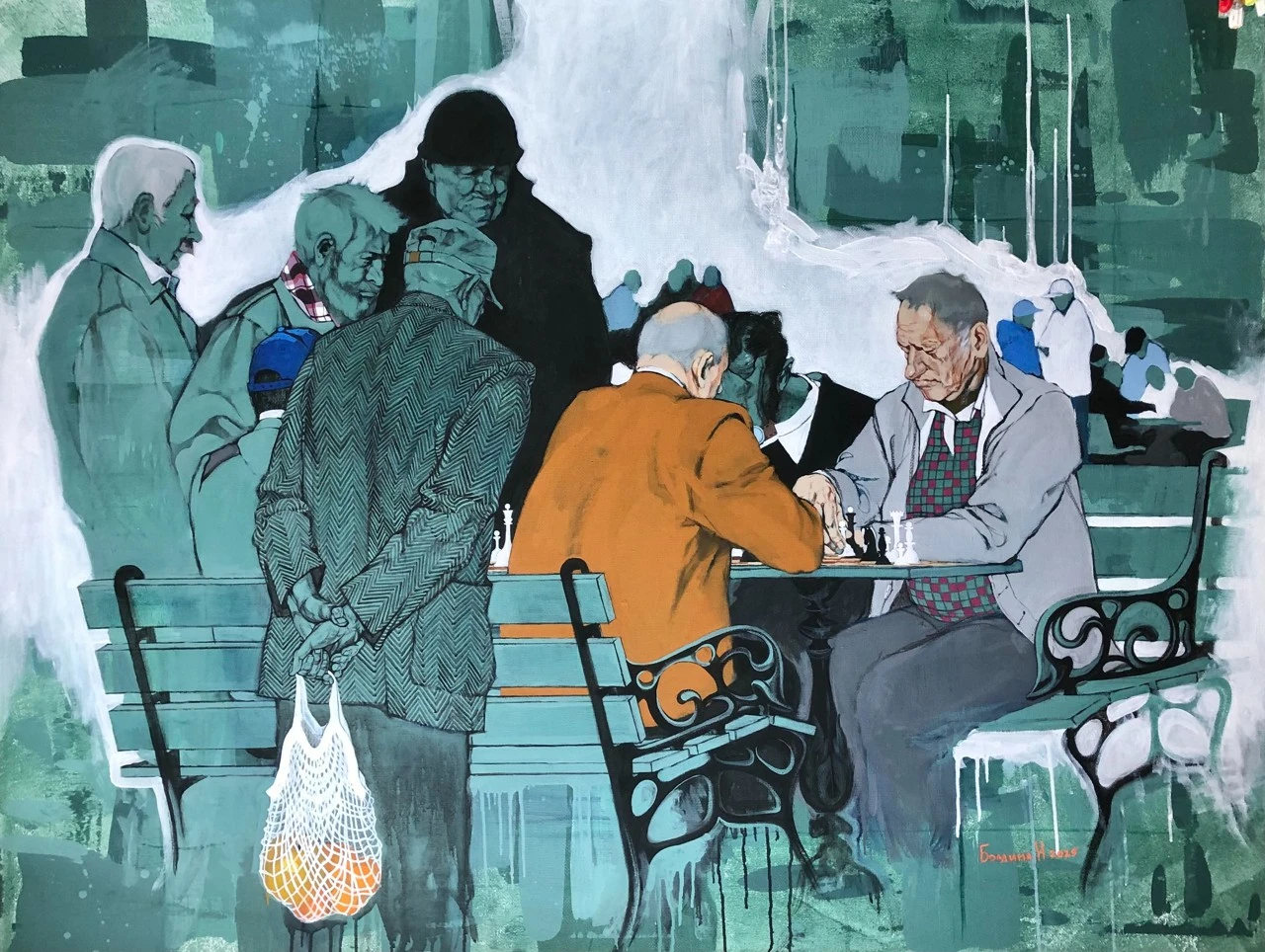 Я хотела законсервировать абсолютно простое бесхитростное явление — старички играют в шахматы в парке у моря. И я абсолютно убеждена в том, что человек становится счастливым, наблюдая как через подобные мгновения течёт жизнь и замечая её.