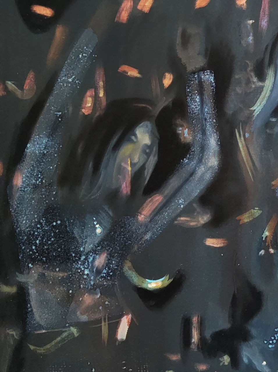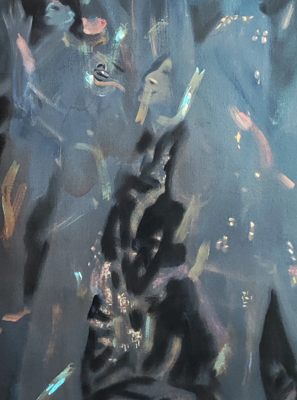 Работа из серии "Мерцание", где я пыталась уловить эффект мерцания через краску. Зафиксировать момент блеска, передать магию света и тени, мерцающий блеск жизни.