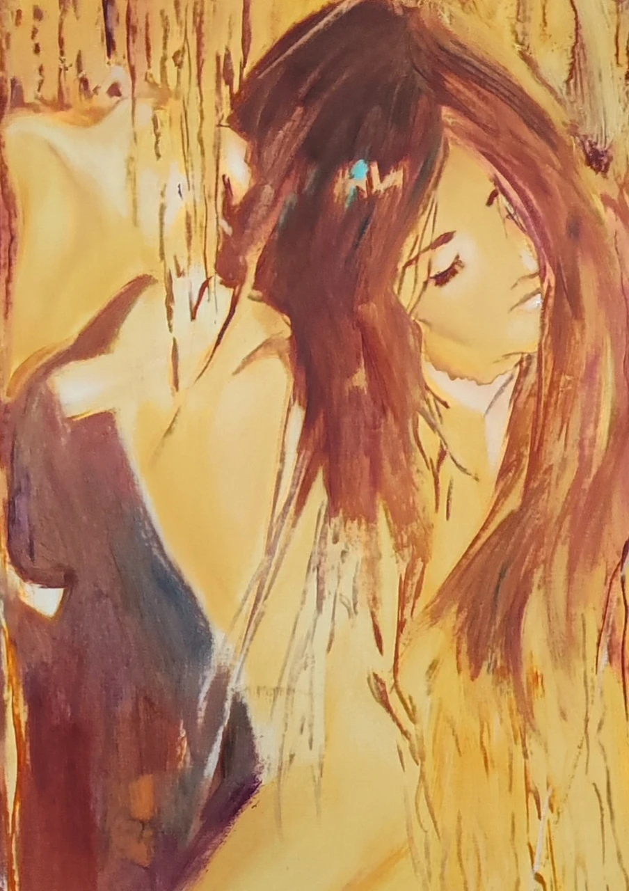 Работа из серии "Мерцание", где я пыталась уловить эффект мерцания через краску. Зафиксировать момент блеска, передать магию света и тени, мерцающий блеск жизни.