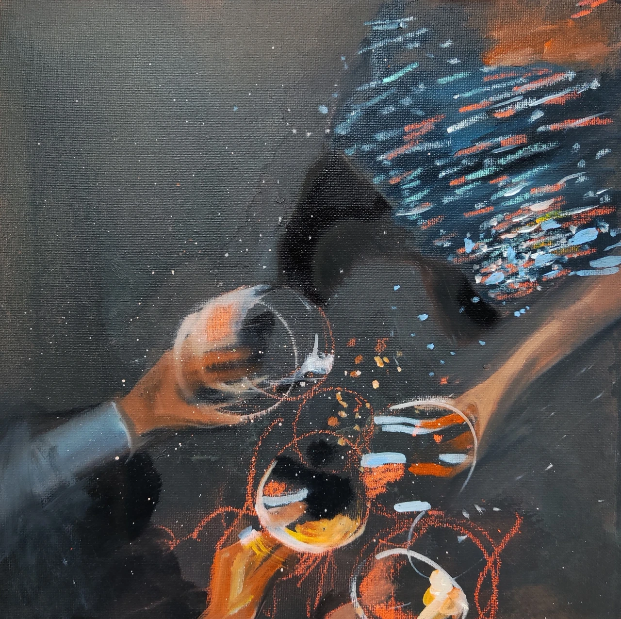 Работа из серии "Мерцание", где я пыталась уловить эффект мерцания через краску. Зафиксировать момент блеска, передать магию света и тени, мерцающий блеск жизни.