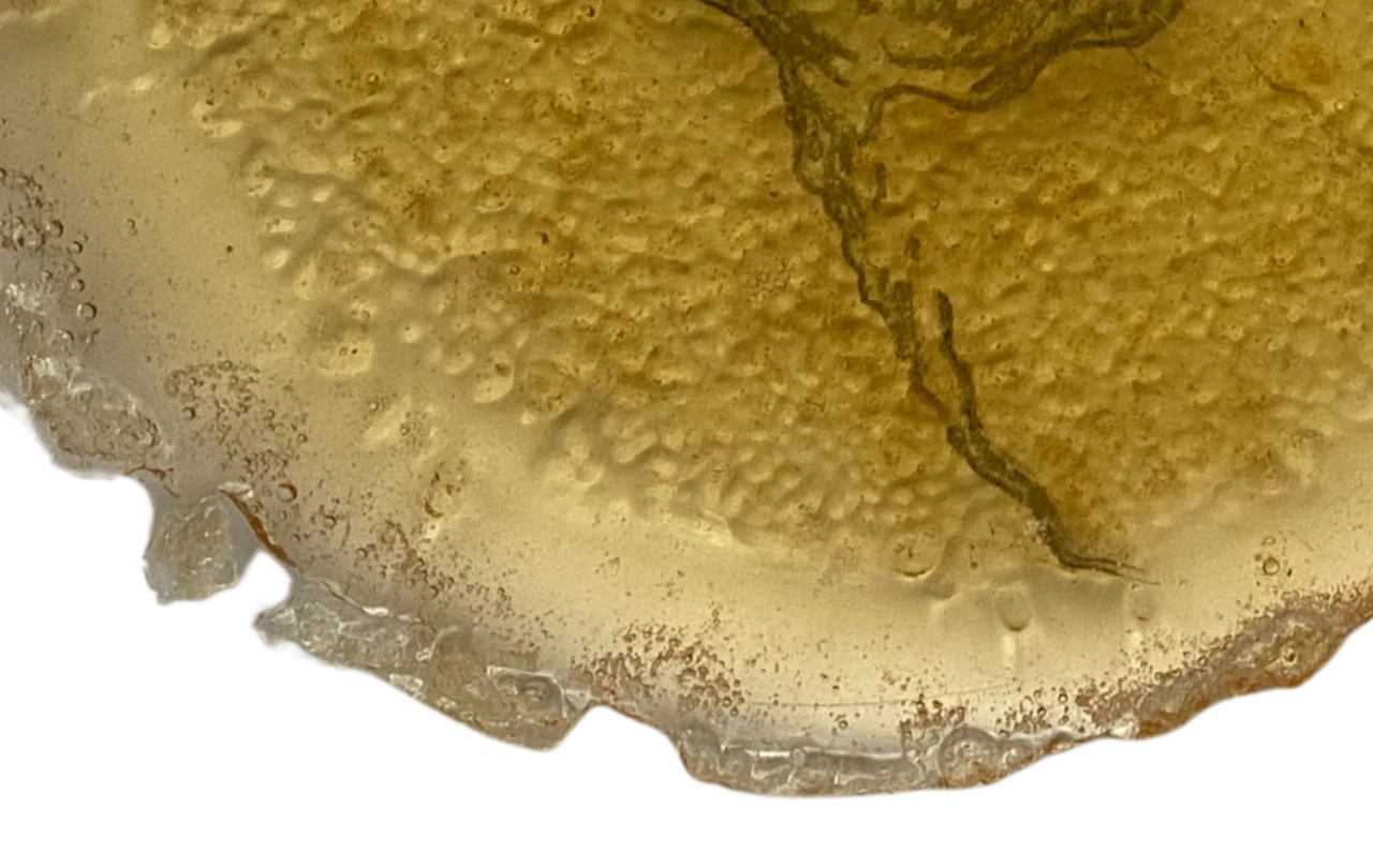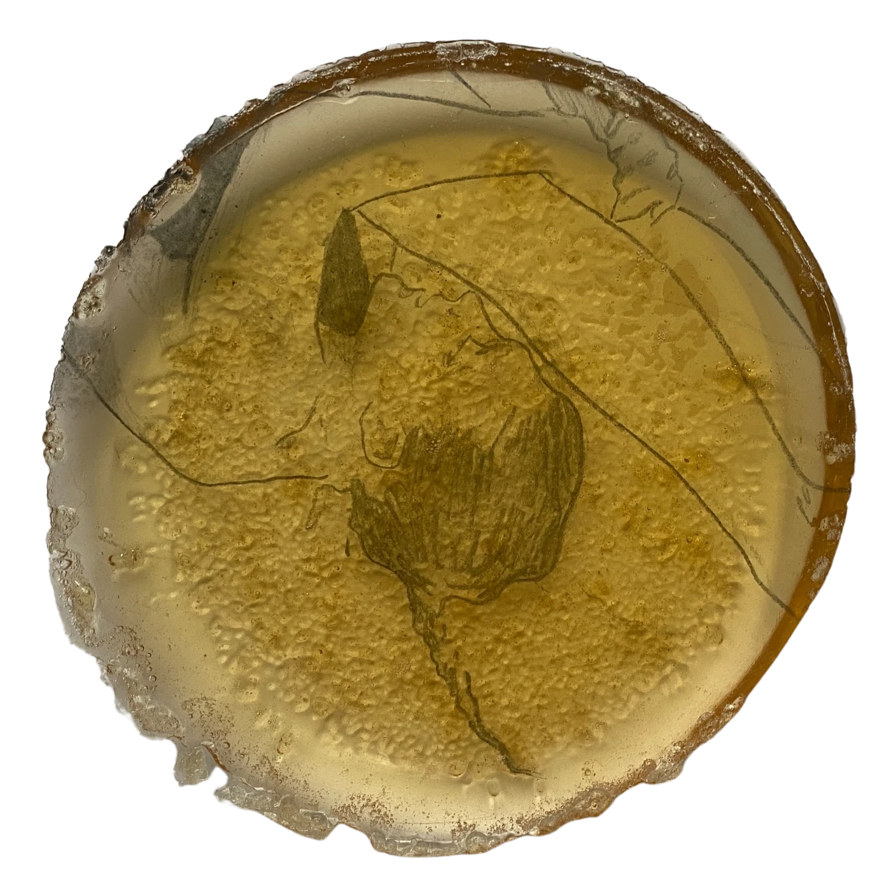 Круглая форма желатиновой пластины отсылает к линзе, чашке Петри, окуляру микроскопа. Желатин диктует условия: он вносит оптические искажения, мерцание, подчеркивая иллюзорность любой фиксации. Работа становится объектом для наблюдения. Где форма рождается из текучести, а движение кристаллизуется в прозрачности. Ныряльщики здесь — не просто спортсмены, а архетипические существа, парящие в первичной, студенистой среде бытия.