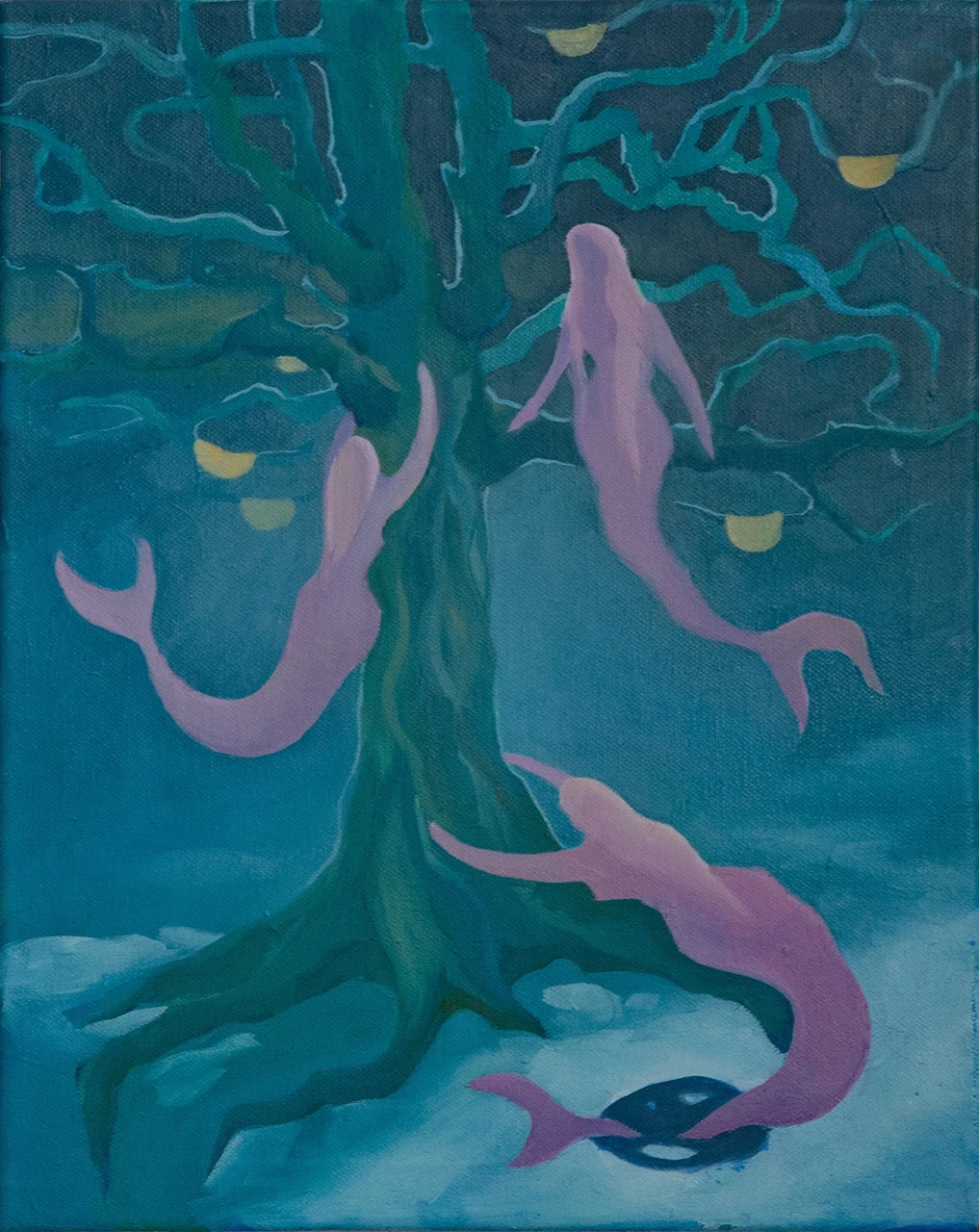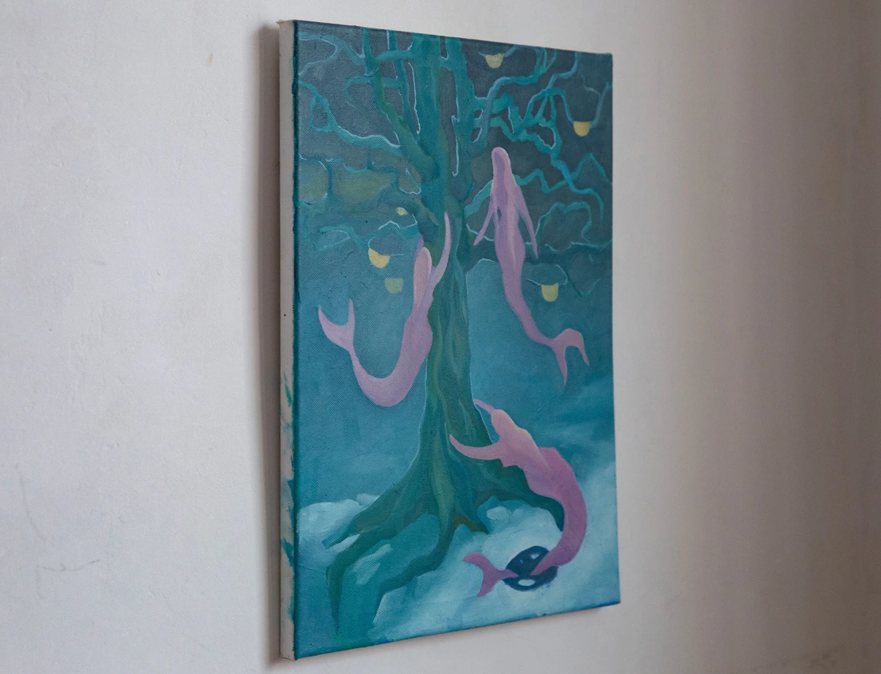 Крестьяне Древней Руси считали, что в лесах русалки забираются на деревья, плетут венки, громко хохочут и поют о своей горькой доле. Согласно некоторым быличкам, они плетут из ветвей деревьев качели и приглашают молодых мужчин покачаться, а затем убивают их. Задабривали русалок мёдом, хлебом и блинами, которые крестьяне оставляли возле полей и на пнях в лесу. Сейчас я использую образ русалки для обозначения духовной части человека, чего то мистического и что не поддается логике и описанию.