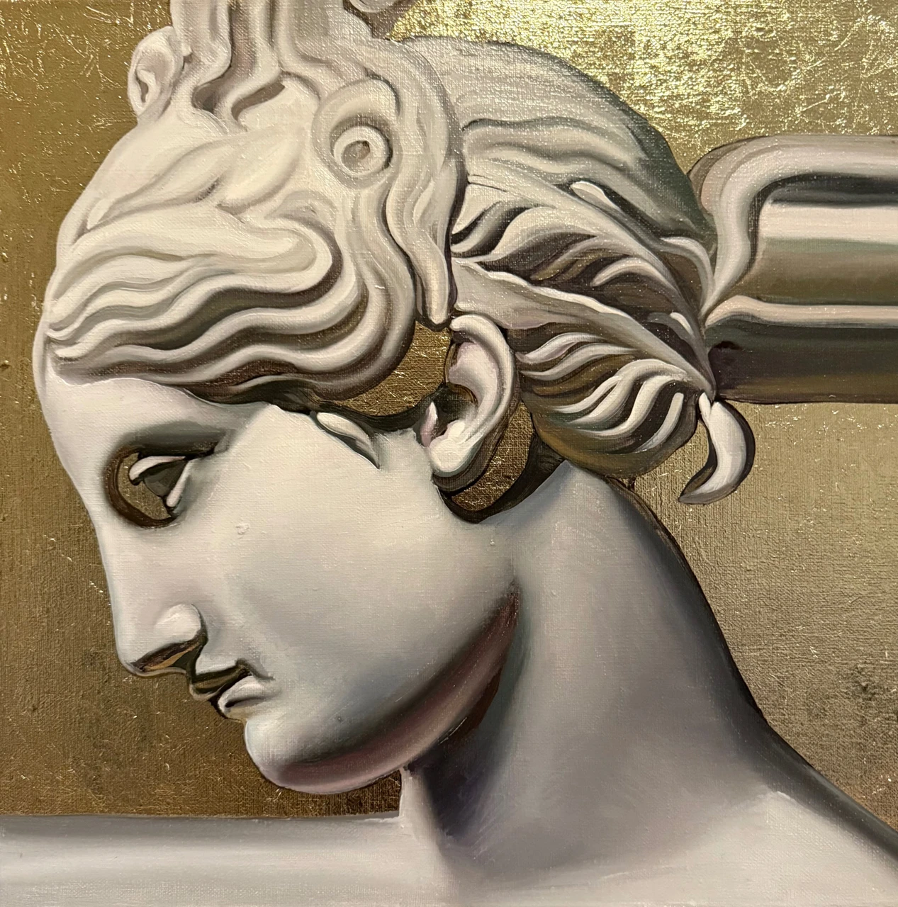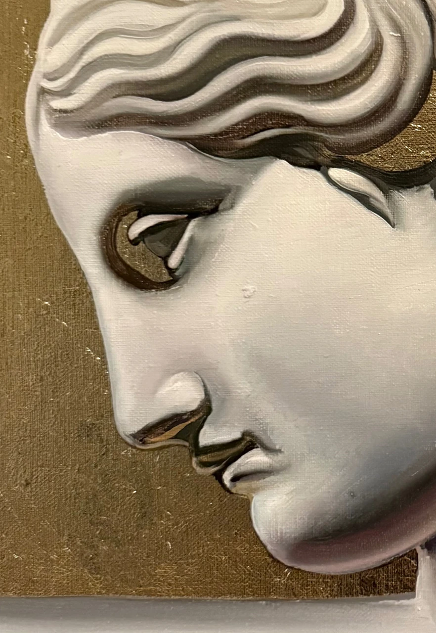 «Архетипы» материализуют идею Джеймса Хиллмана о том, что душа мира проявляется через его изменения. Классические головы со сколами — это не образы упадка, а свидетельства таких изменений, через которую архетип проникает в мир и способствует трансформации образа. Золотой фон здесь — не украшение, а поле имманентного — то, что Агамбен мог бы назвать «вечным присутствием», — на котором разворачивается драма взаимодействия между чистым абсолютом (золото) и её неизбежным воплощением в материи (мрамор).