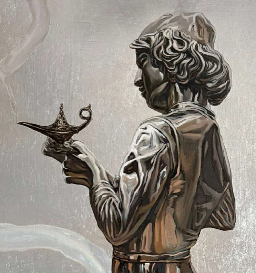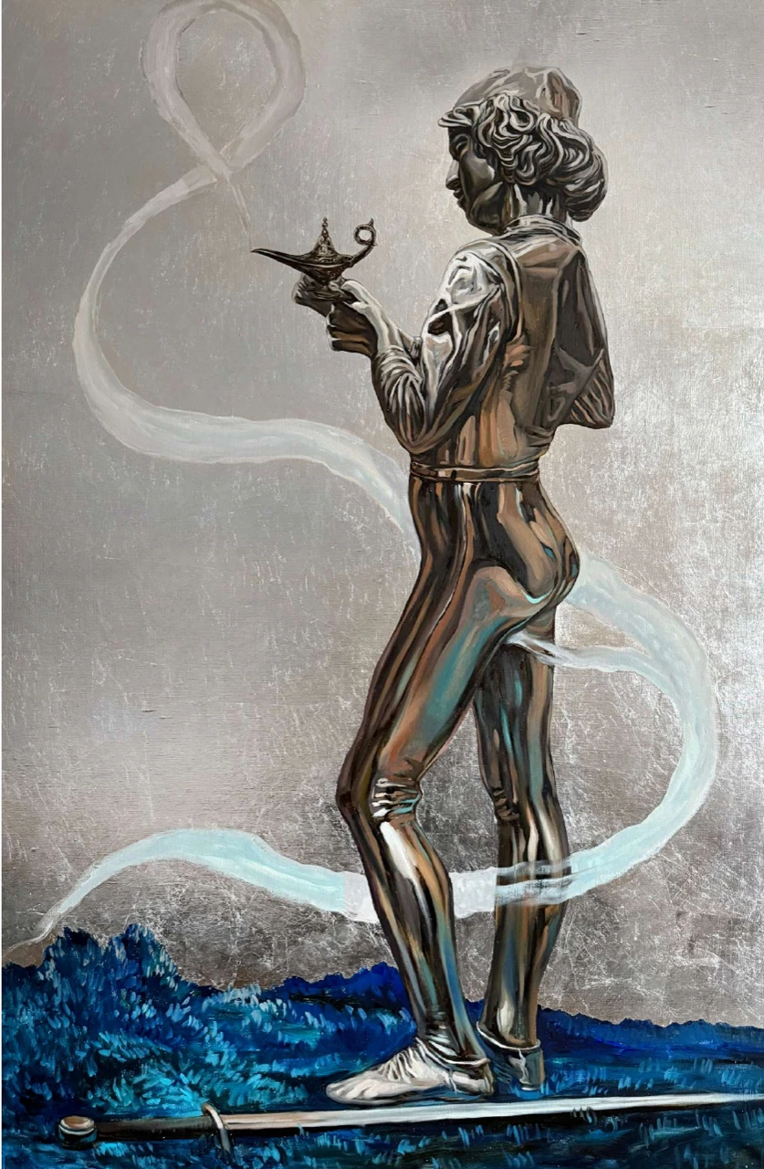 The first step towards mundo unis, puer and senex meet on a field of blue grass. It is an experiment with a lifelong effect, a point of no return, not yet "freedom to", but already "freedom from". The scene is filled with the smells of the Garden of Eden, the roughness of leaves and the glitter of newly found silver.