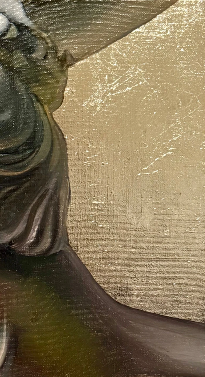 «Архетипы» материализуют идею Джеймса Хиллмана о том, что душа мира проявляется через его изменения. Классические головы со сколами — это не образы упадка, а свидетельства таких изменений, через которую архетип проникает в мир и способствует трансформации образа. Золотой фон здесь — не украшение, а поле имманентного — то, что Агамбен мог бы назвать «вечным присутствием», — на котором разворачивается драма взаимодействия между чистым абсолютом (золото) и её неизбежным воплощением в материи (мрамор).