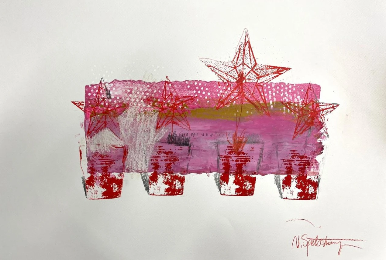 МатериалыАкварельная бумага, шелкография, смешанная техника