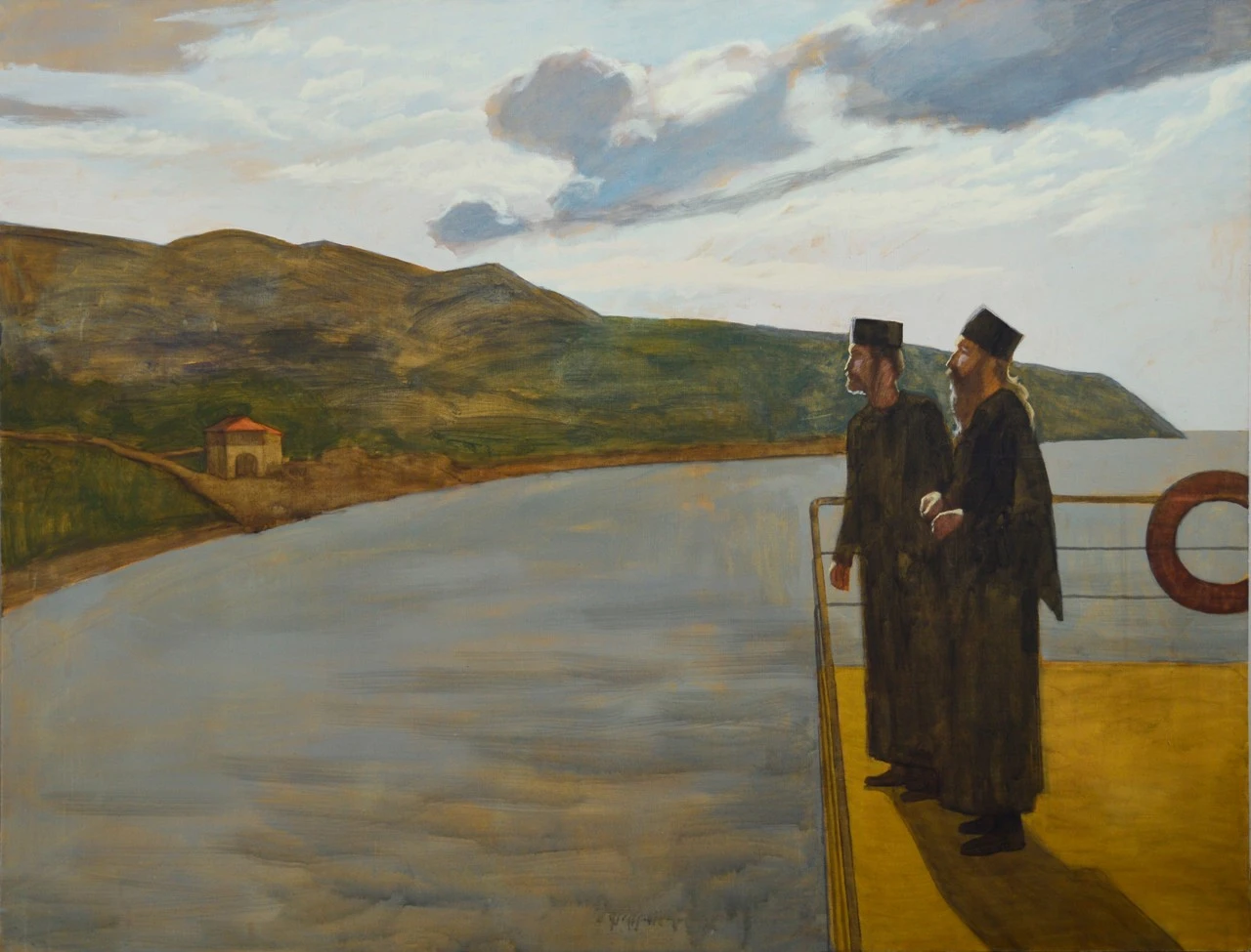 В студенчестве решил вдруг за день поехать на Афон, на другой день достал билеты, на третий день уже был там. Сам не понял как так вышло. В первом же монастыре «Дохиар» подходя к иконе Богоматери, вылились слёзы. Нашел палку, опираясь на неё прошагал неделю через камни, кусты, дороги между монастырями, (даже встретил своего тогда педагога, расписывающего храм). Помню, как резали помидоры с монахом, на освящёном солнцем балкончике и говорили об искусстве, как впервые держал в руках акулу и рыбу удильщик, поймаными монахом, и как переодели меня всего т. к. одежду всю пришлось постирать. Как я не знающий английского языка, общался на английском и меня понимали и я понимал.
