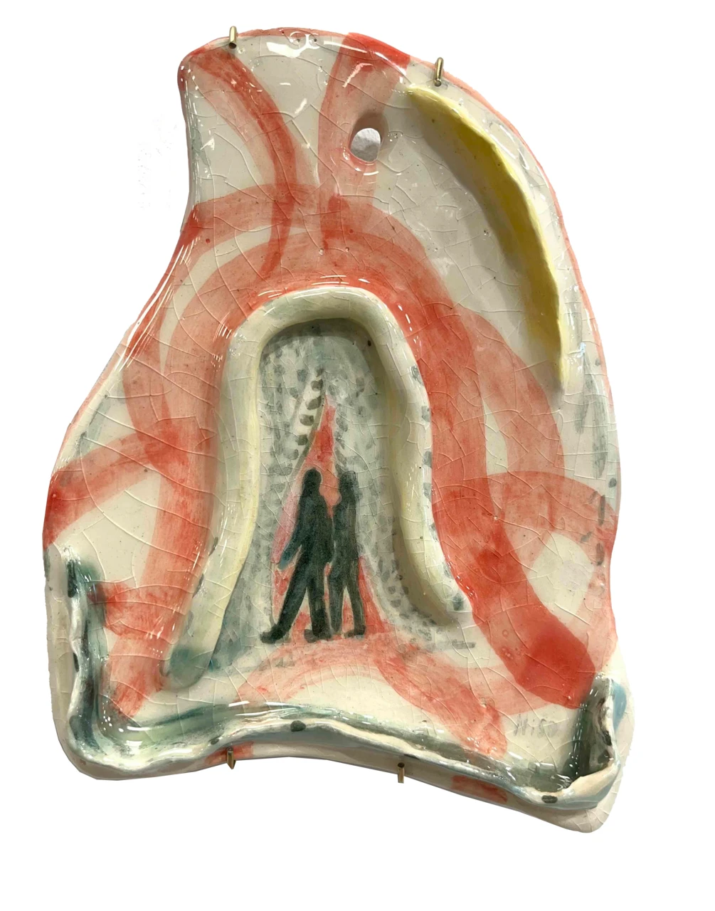 Работа предлагает зрителю почувствовать атмосферу перемен, когда двое идут в неизвестность под лунным светом, а серебристый занавес едва колышется, открывая им путь.