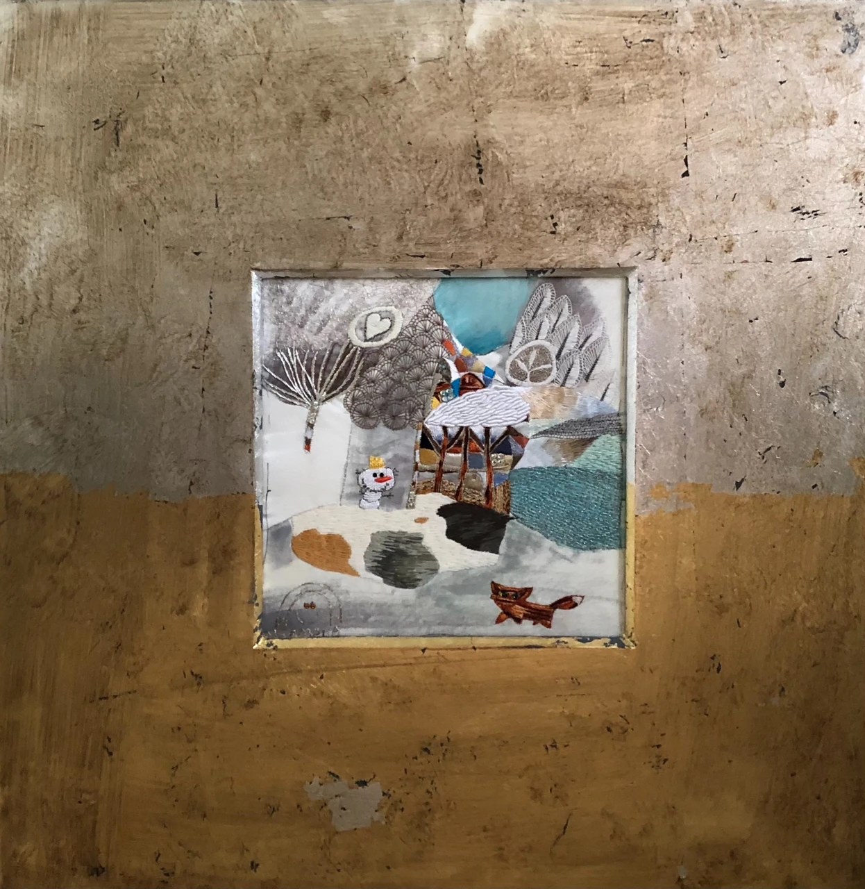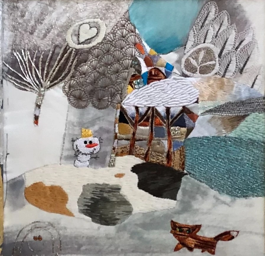 Работа выполнена в авторской технике живописи нитью, которая совмещает в себе опыт древних мастериц и современный подход к вышивке.