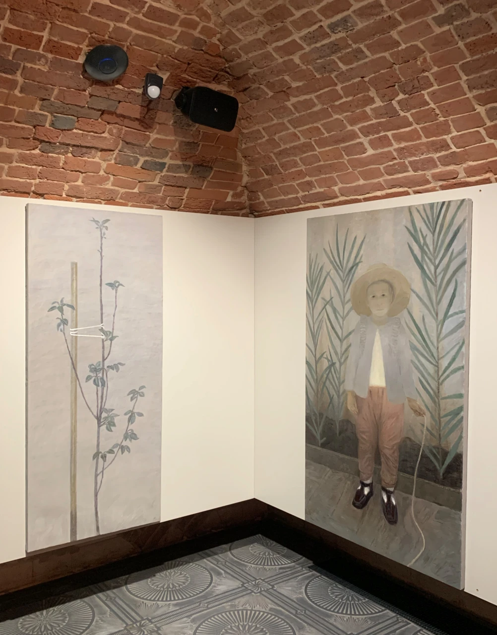 Однажды весной я обратила внимание на заботливо подвязанные к опорам молодые растения. Такие действия человека помогают им укореняться, набираться сил, выдерживать плохую погоду. Увиденный образ включил детские воспоминания, ощущение связи со своим взрослым, поддерживающим и оберегающим. Связь, которая тянется от наших родителей к нам, от нас к нашим детям, всегда незрима, но она существует. Мы также как эти растения были уязвимы в детстве, нуждались в заботе. Нас кто-то оберегал, помогал, растил, играл, кормил, залечивал раны. И я как художник хотела передать ощущение присутствия такого «невидимого взрослого» в нашей жизни.