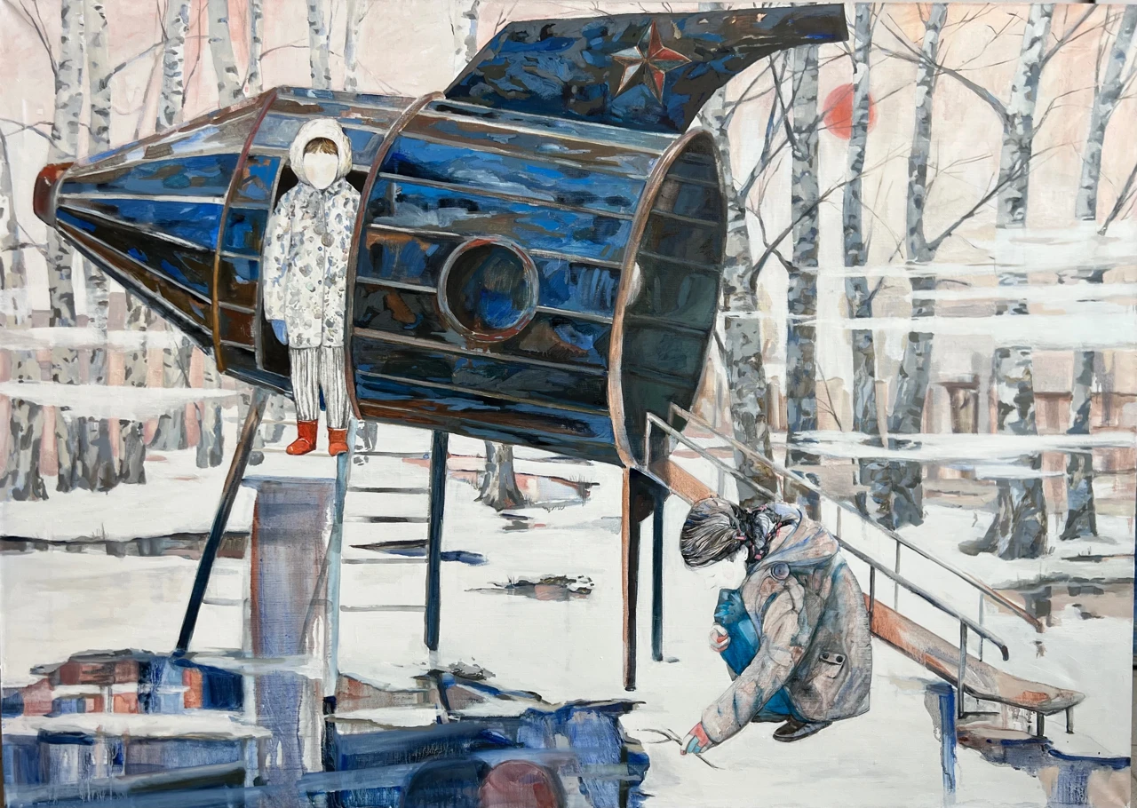 Советская мечта о звездах однажды приземлилась во дворах — в виде горок — ракет с круглыми окошками, где каждый ребенок мог почувствовать себя космонавтом. Со временем парк начал увядать, и коснулась эта печальная участь и ракеты: металл покрылся ржавчиной, краску снова и снова меняли. Но ни лужи под ногами, ни ржавчина на ладонях не мешали нашей игре. Мы с радостью забирались внутрь, сидели на лавочках и мечтали — каждый о своем полете.
