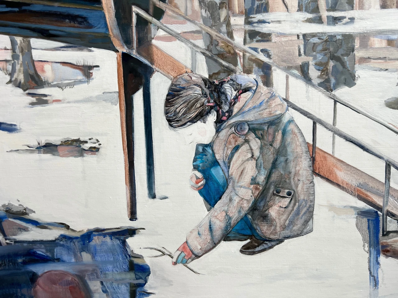 На картине — тени детей, застывшие в тишине наступающей весны. Они смотрят вперед — в еще не наступившее время.