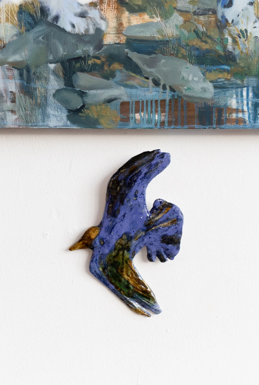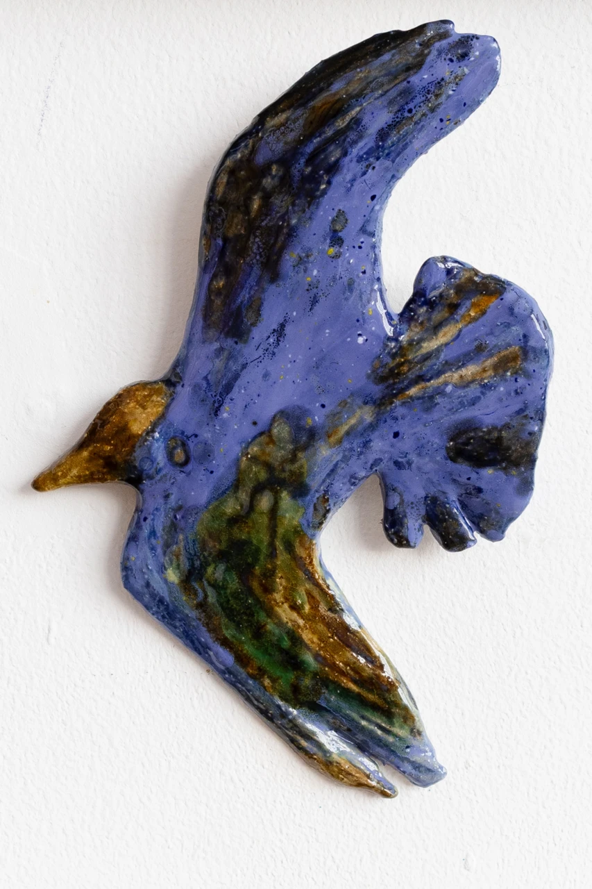 Работа представляет собой керамический рельеф летящей птицы.