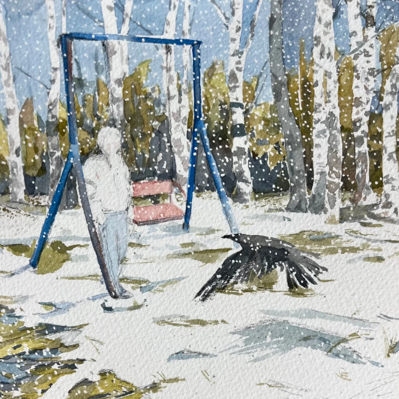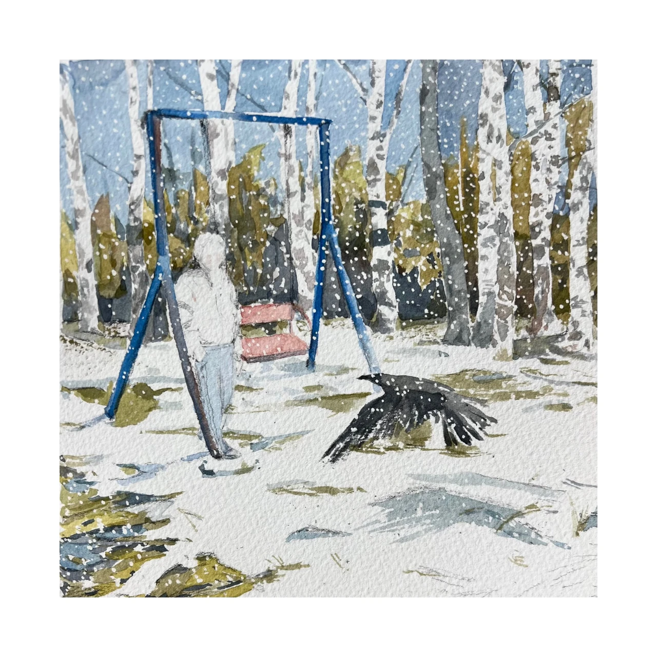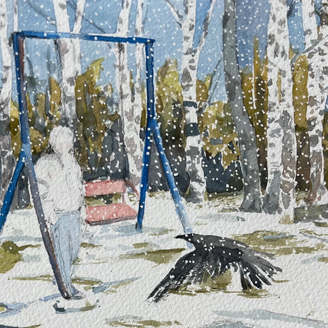 На работе — момент северной весны, когда в мае в глубине парка еще можно встретить не растаявший снег.
