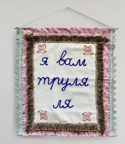 Основным медиумом творчества художницы является текстиль, который она сочетает с примитивной живописью. Концепция работ заключается в презентации феминности и наивной романтики. Она осмысливает устойчивые выражения и фразеологизмы, черпая вдохновение из русского фольклора и мифологии, придавая им ироничный юмористический характер.