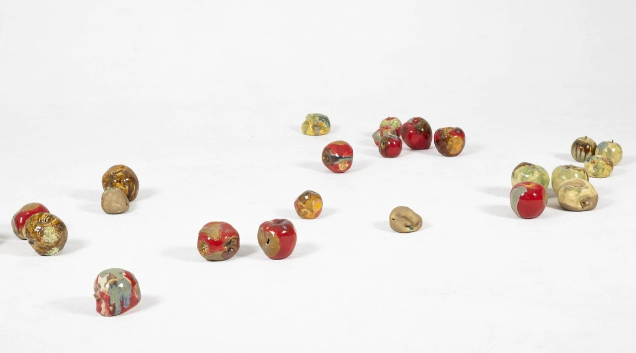 Серия объектов «Потерянный рай» представляет собой сгнившие яблоки из фарфора. Они как незавершенные дела, нереализованные планы из прошлой жизни. Все плоды жизни оказались ненужными, отброшенными. Они навечно застывают в этой фазе распада.