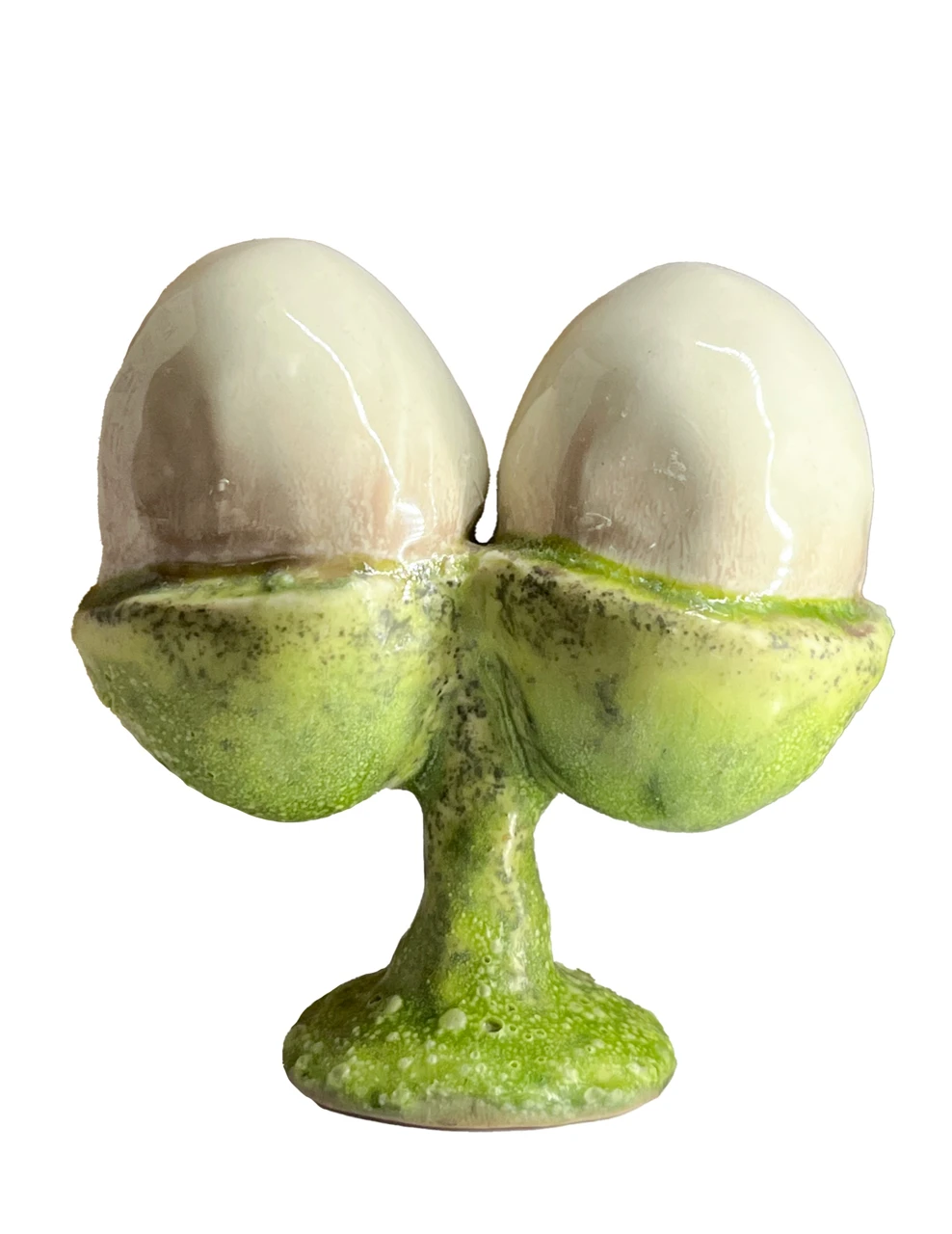 Ироничное название работы «Золотые яйца капитализма» намекает на продолжающееся неравноценное распределение капитала среди населения планеты. Капитализм был зарожден при патриархате, большая часть капитала находится у мужчин. Даже в самых развитых странах продолжает существовать «налог на розовое» и «стеклянный потолок» для женщин. Формат работы — это небольшие статуэтки: подобные вещи часто встречаются в любительских (и не только) коллекциях.