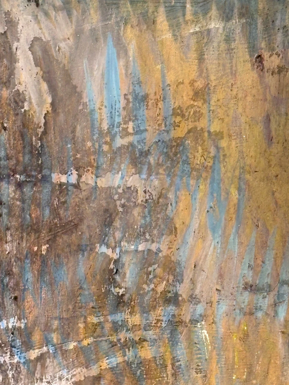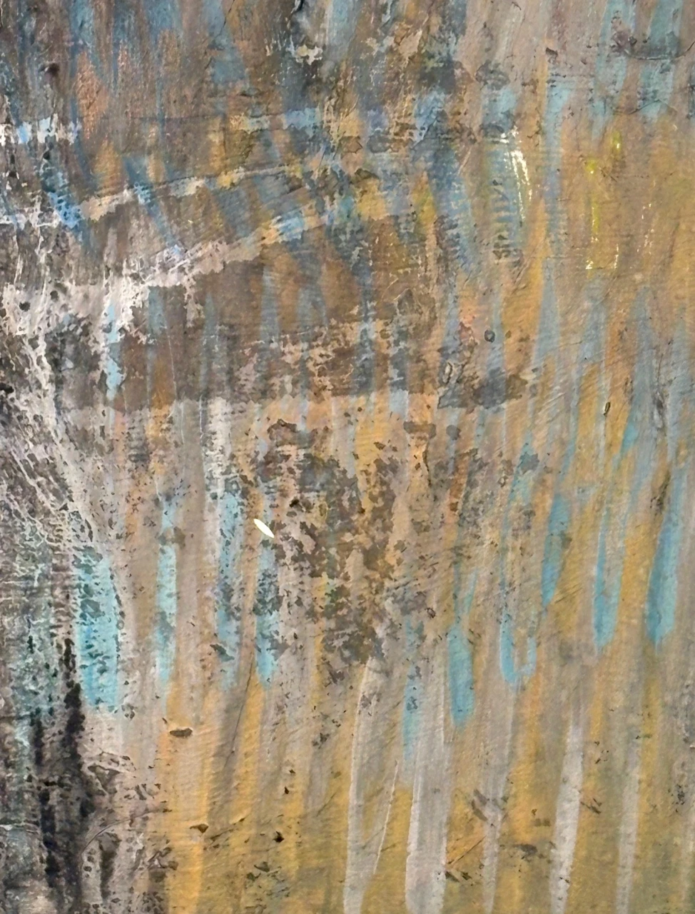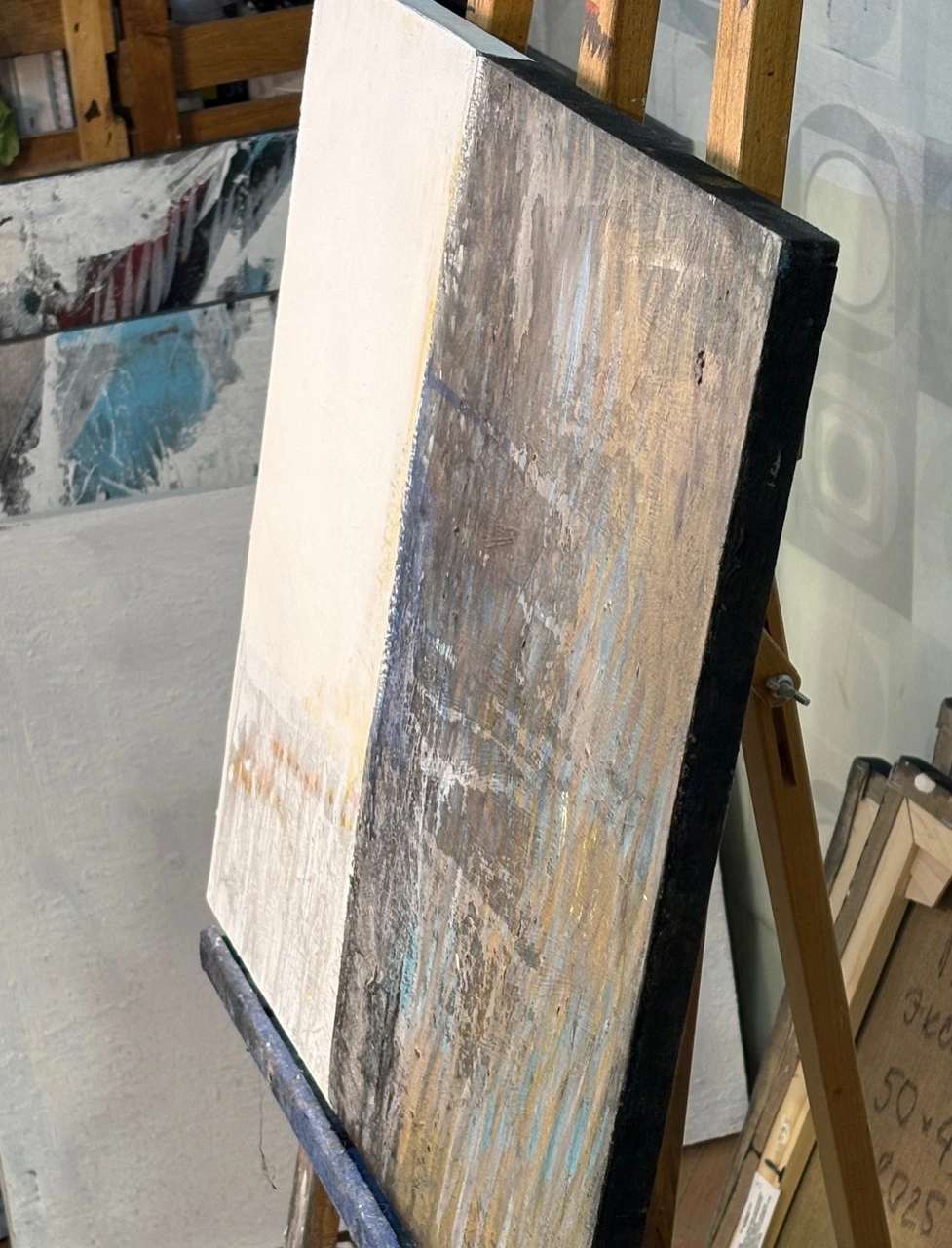 В работе используется техника многочисленных промывок медиума на водной основе: акрил, тушь, темпера.