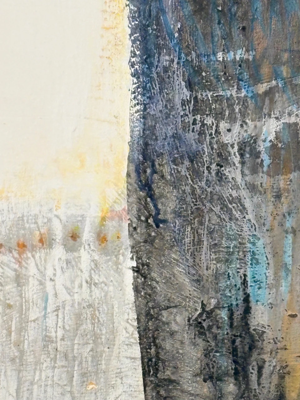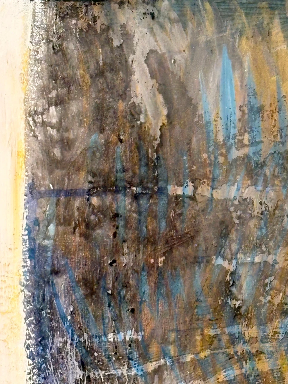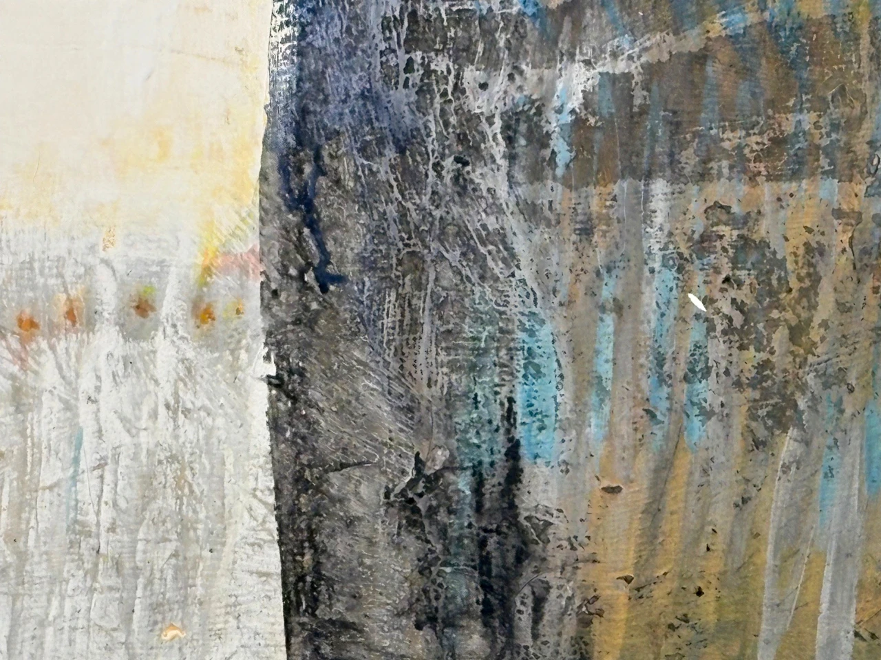 В работе используется техника многочисленных промывок медиума на водной основе: акрил, тушь, темпера.