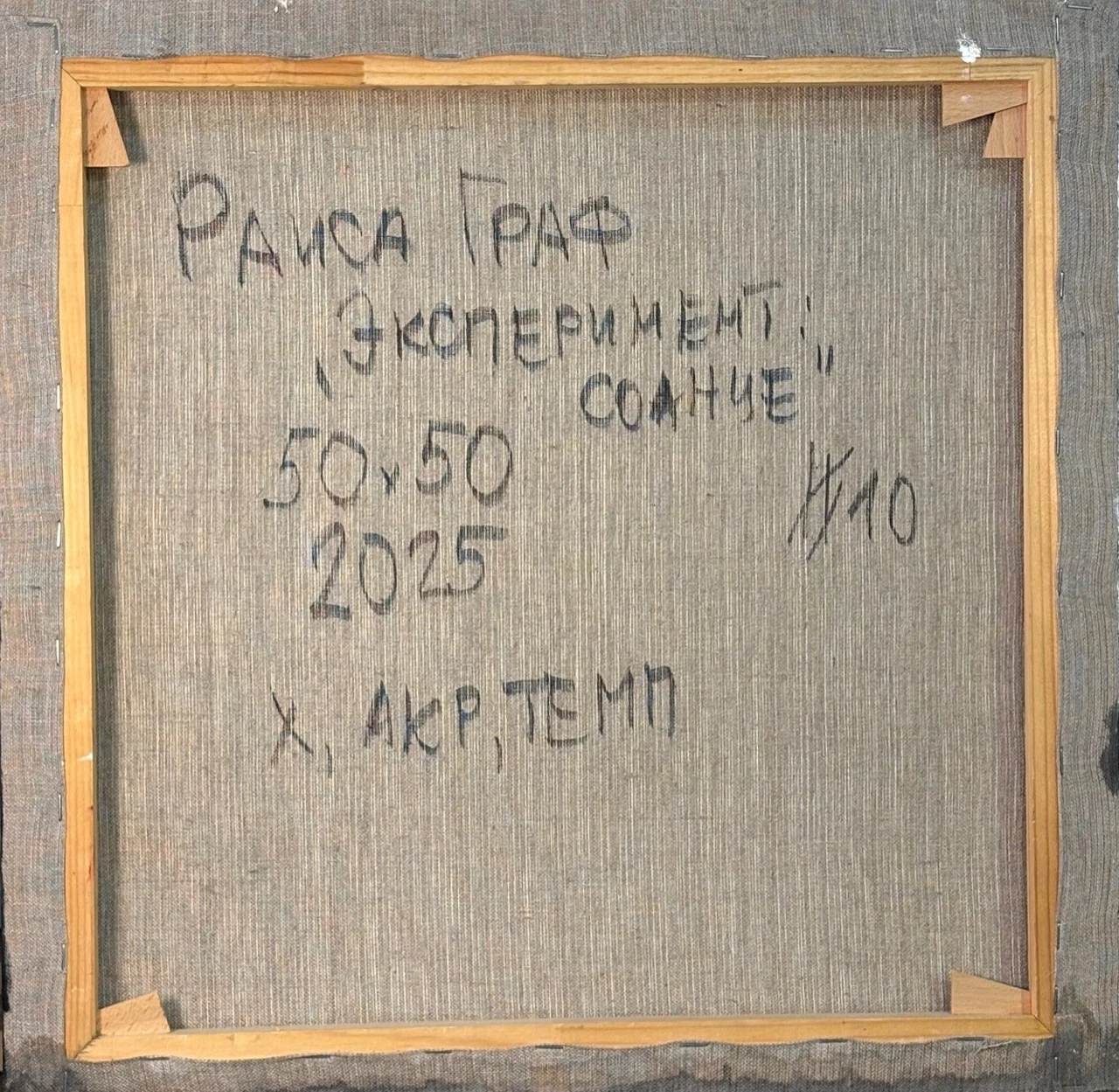 Серия "Эксперимент. Солнце" состоит из достаточно небольших работ. Создание одновременно пула работ дает возможность попробовать разные варианты техники. Их одновременность переопыляет замысел, делает почти все работы внутренне согласованными. В этой серии главным является желтый цвет (солнце). Часть работ солнце и свет, желтый на белом, часть показ солнечного света на контрасте, через тень.