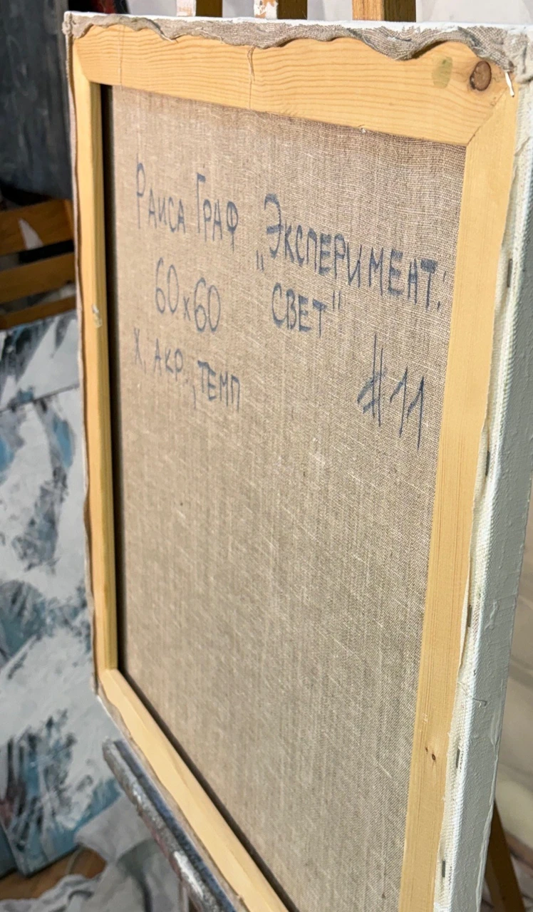 Серия "Эксперимент. Свет" состоит из достаточно небольших работ. Создание одновременно пула работ дает возможность попробовать разные варианты техники. Их одновременность переопыляет замысел, делает почти все работы внутренне согласованными. В этой серии главным является белый цвет (свет). Именно на таком цветовые пятна обретают субъектность.