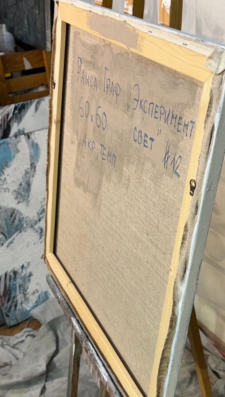 Серия "Эксперимент. Свет" состоит из достаточно небольших работ. Создание одновременно пула работ дает возможность попробовать разные варианты техники. Их одновременность переопыляет замысел, делает почти все работы внутренне согласованными. В этой серии главным является белый цвет (свет). Именно на таком цветовые пятна обретают субъектность.