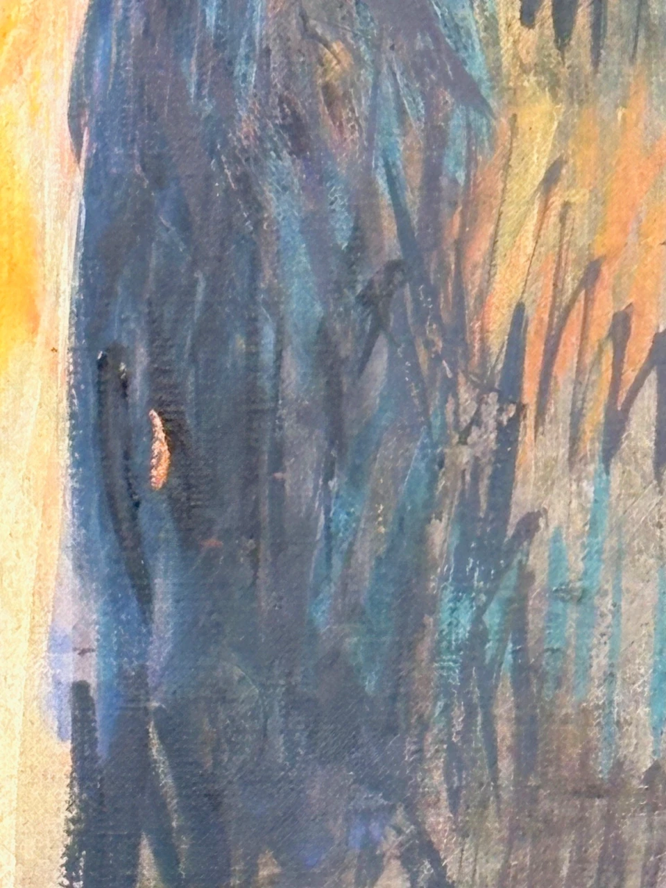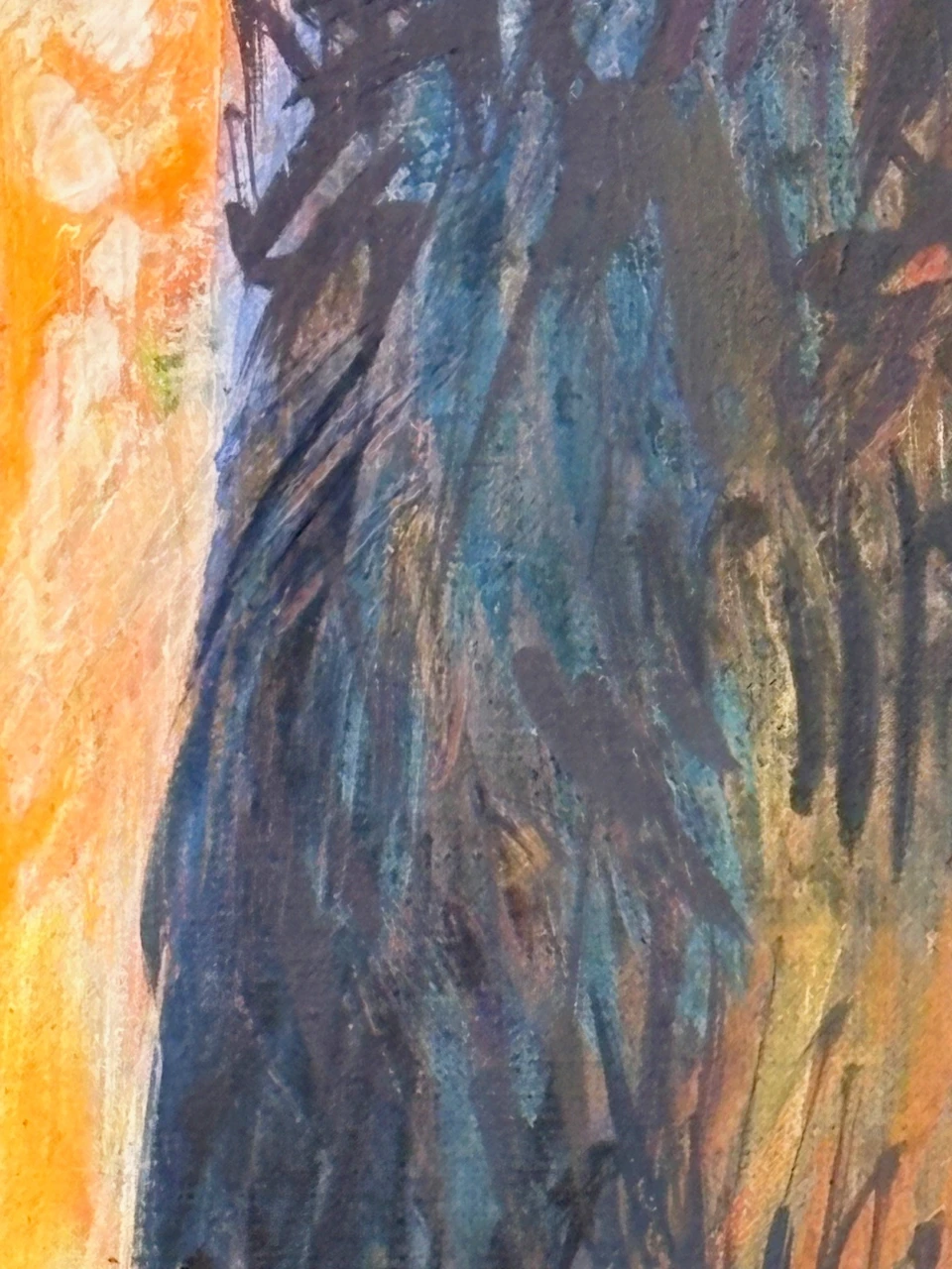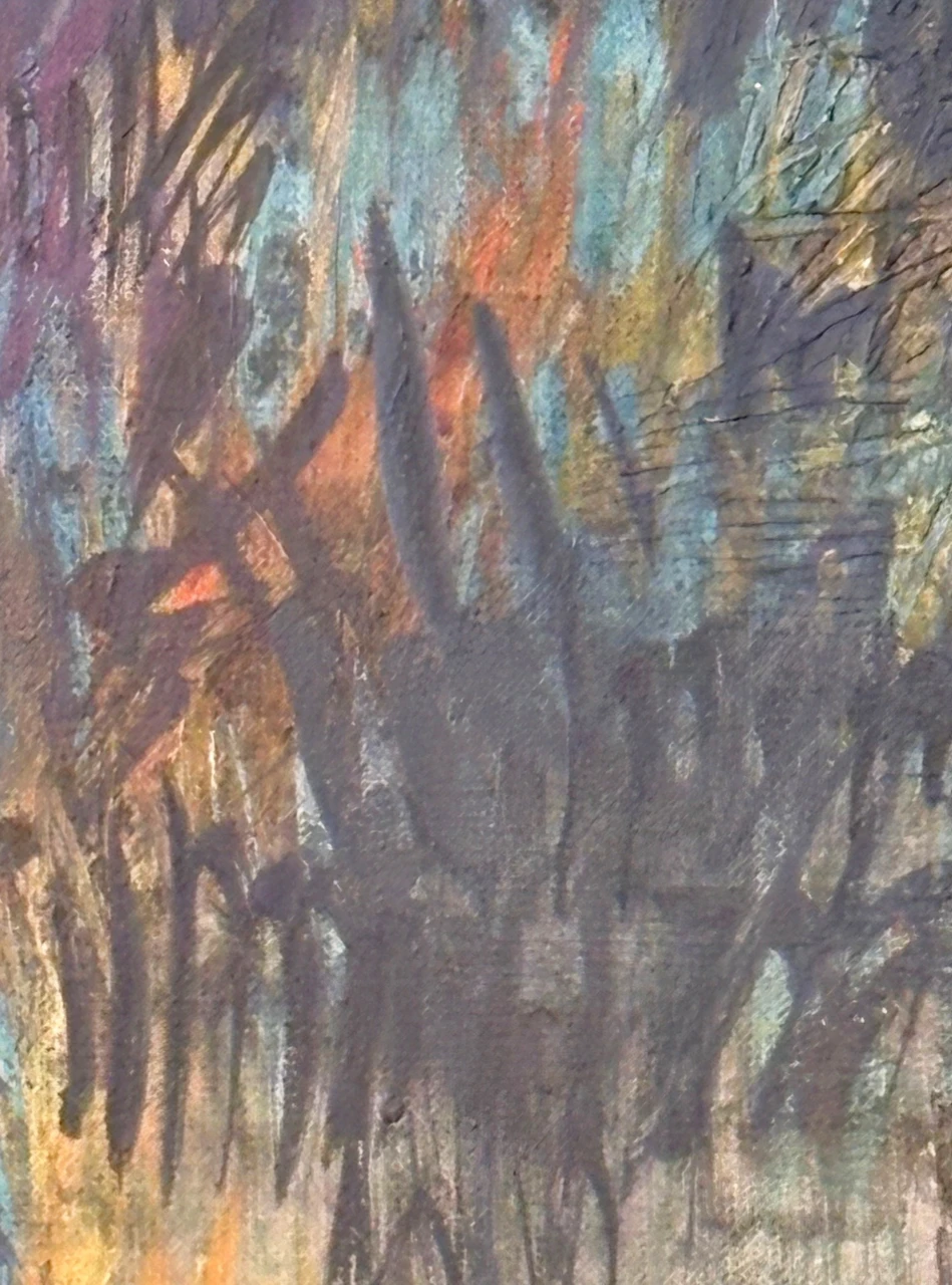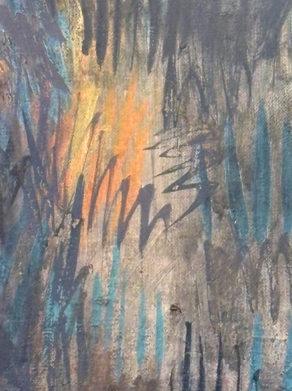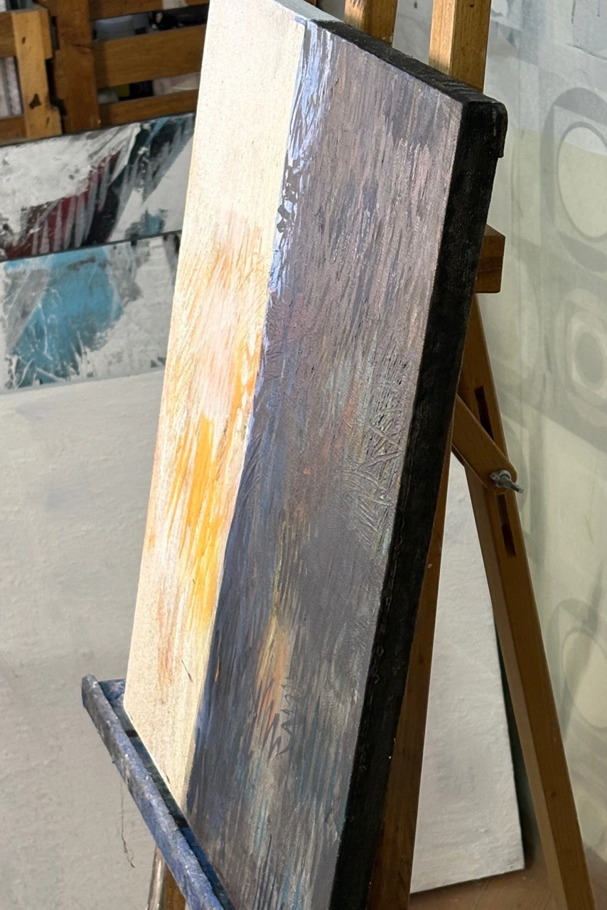 В работе используется техника многочисленных промывок медиума на водной основе: акрил, тушь, темпера.