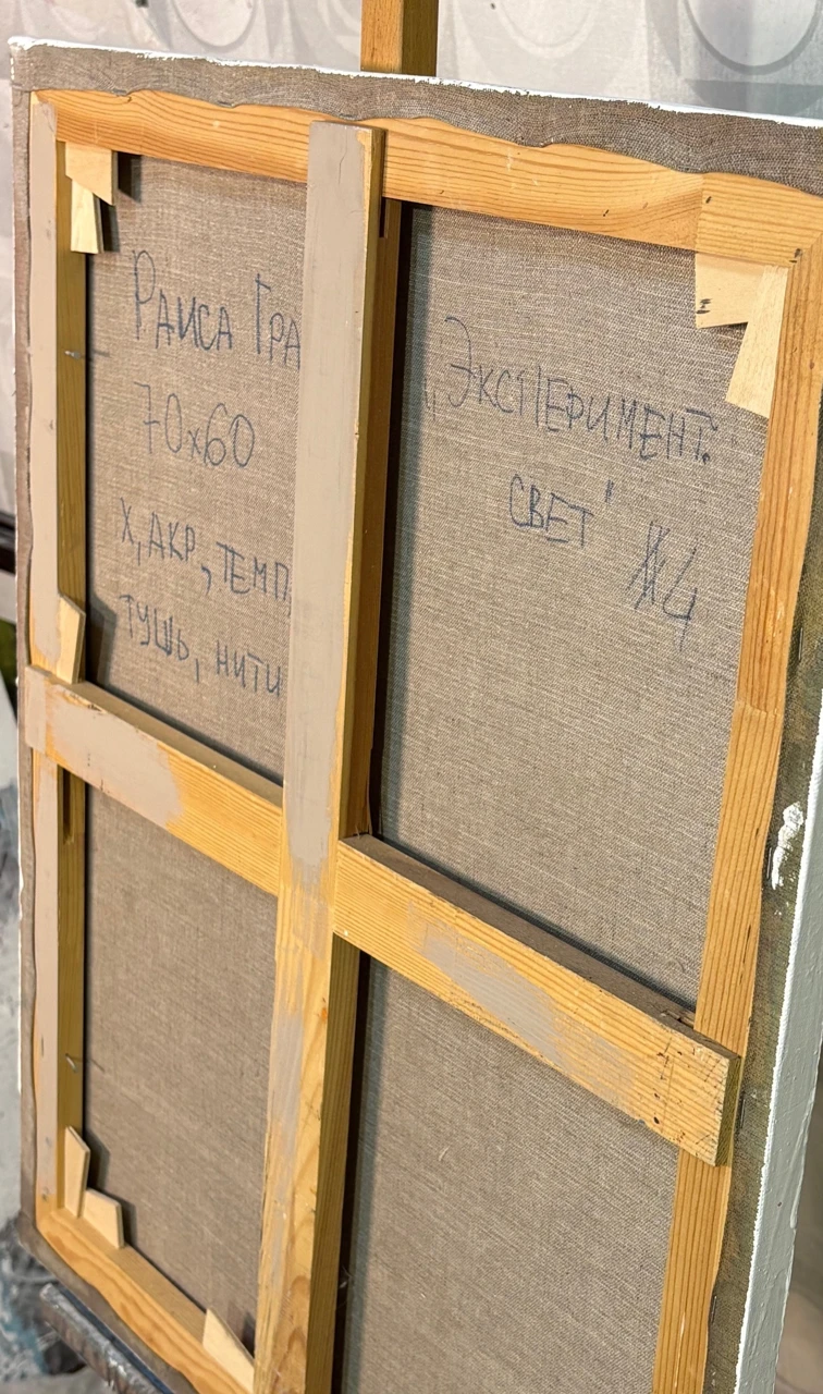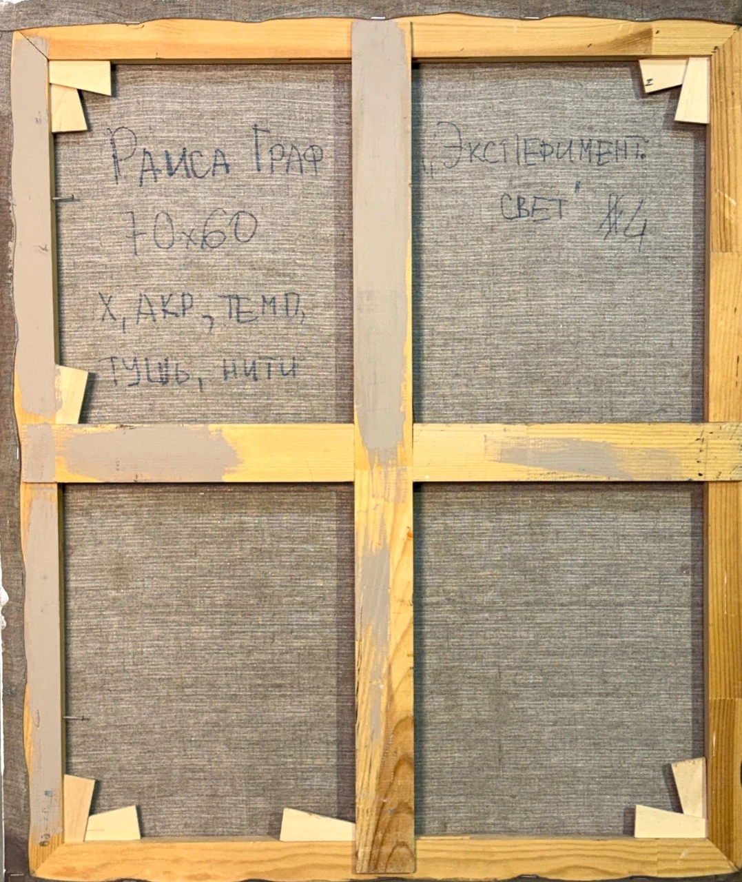 В работе используется техника многочисленных промывок медиума на водной основе: акрил, тушь, темпера. Работа парная с #5 "Эксперимент. Свет", но может быть куплена и отдельно