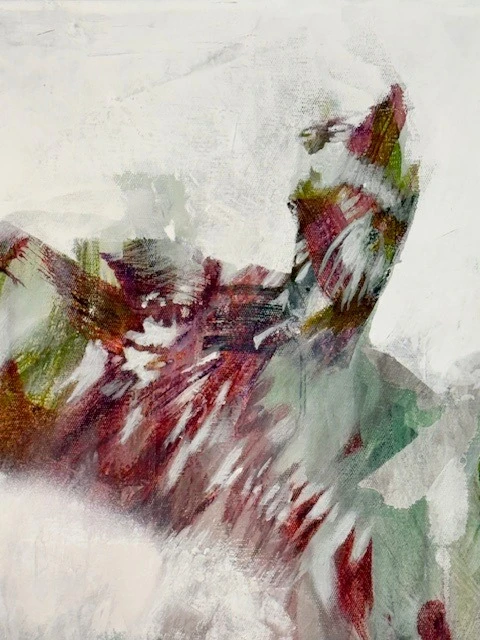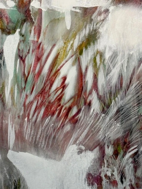 Художник использует технику многочисленных промывок акрила и темперы.