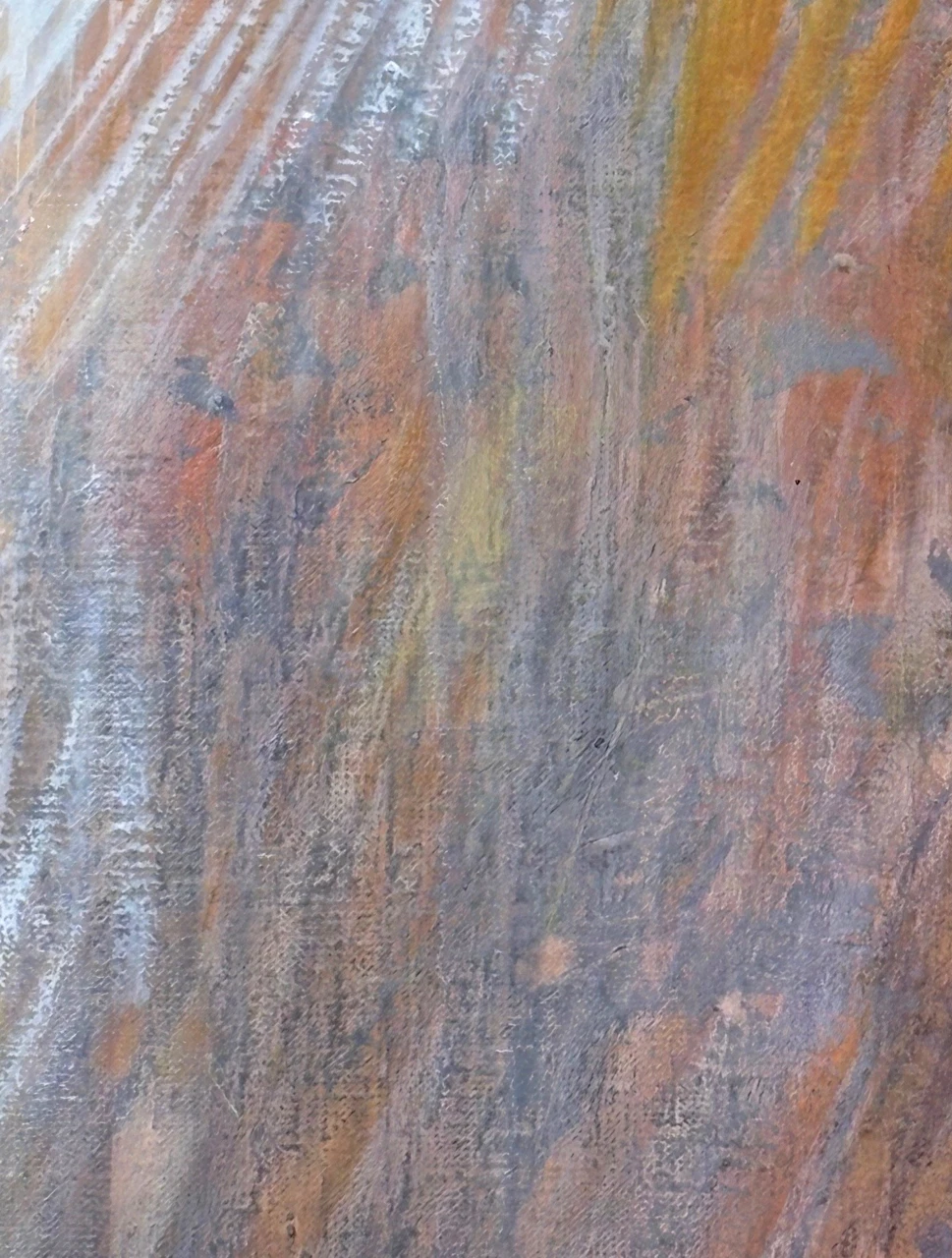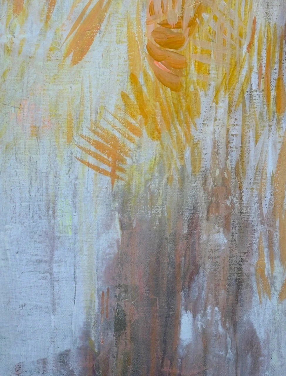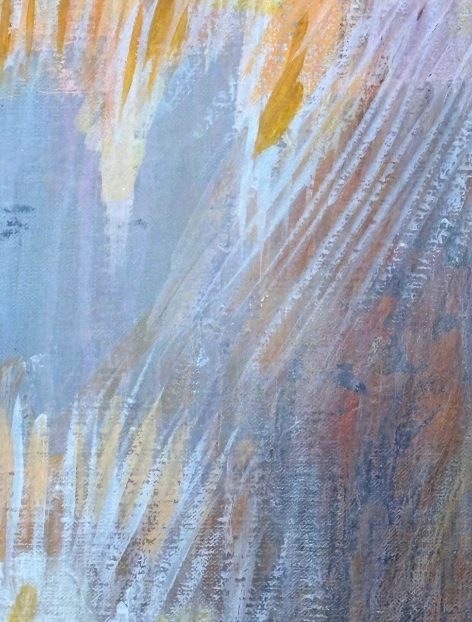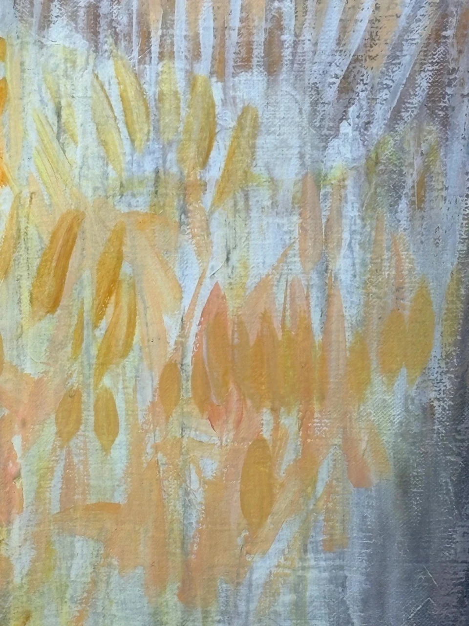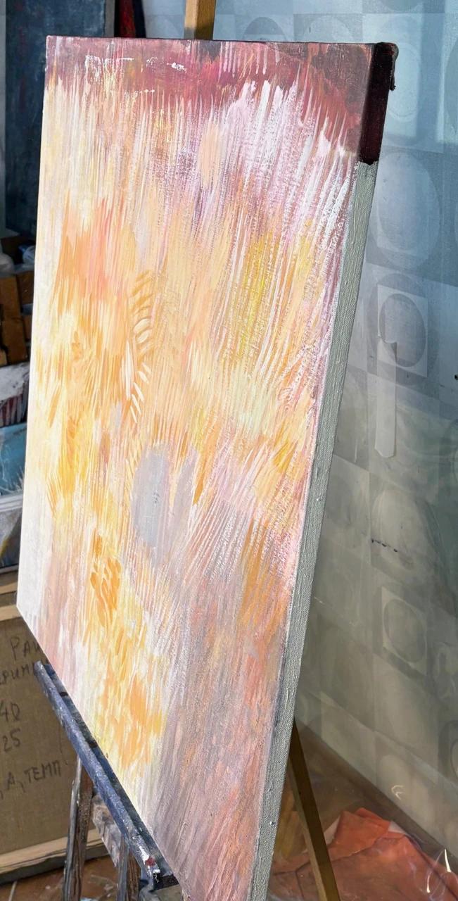 В работе используется техника многочисленных промывок медиума на водной основе: акрил, тушь, темпера.