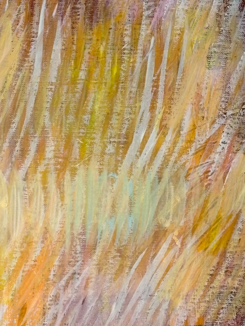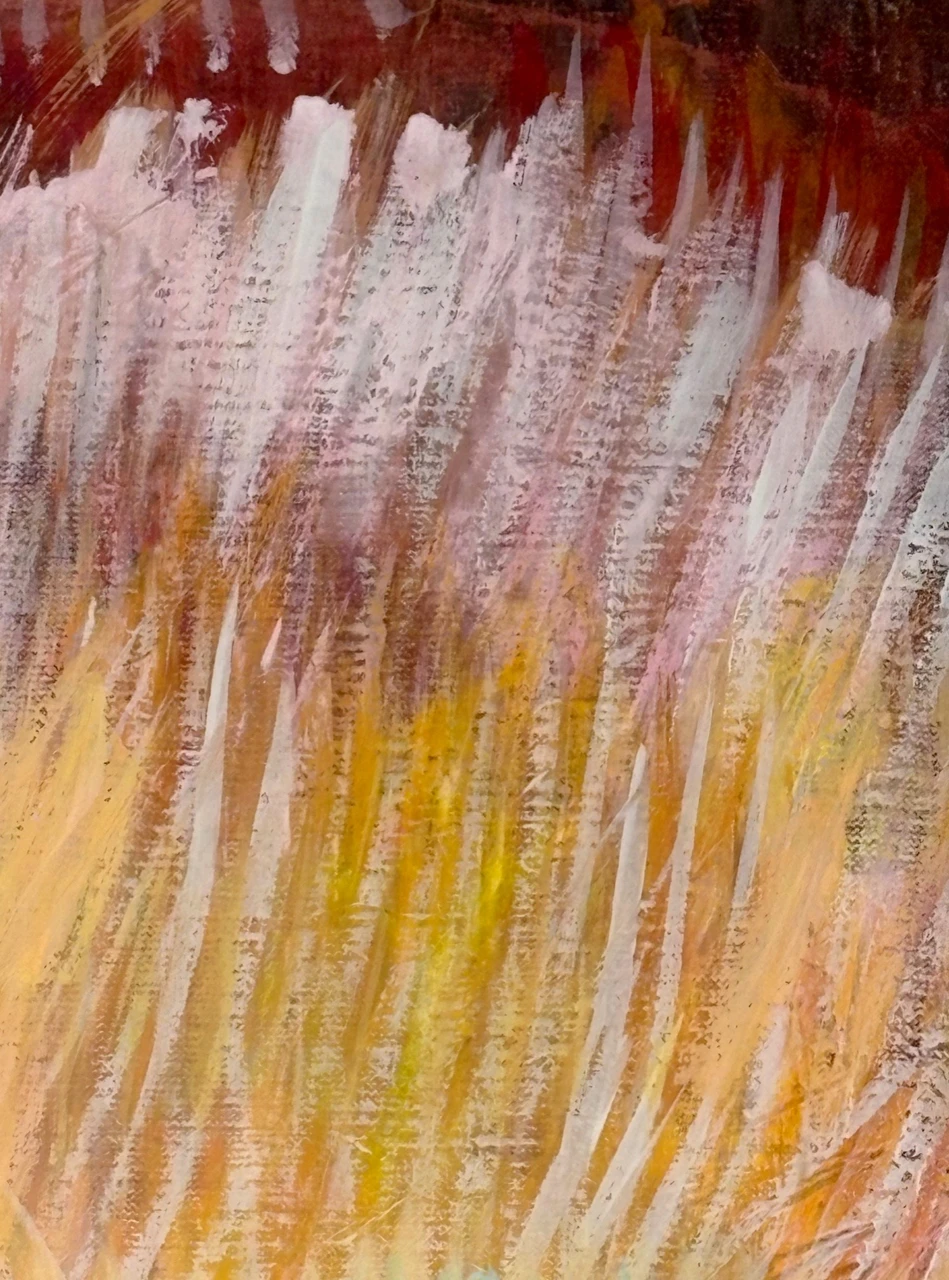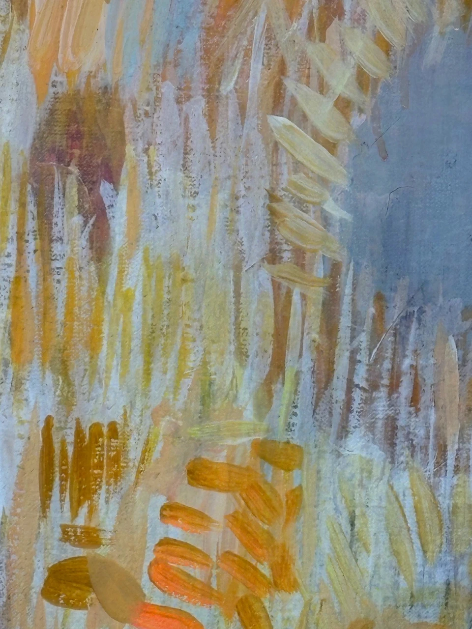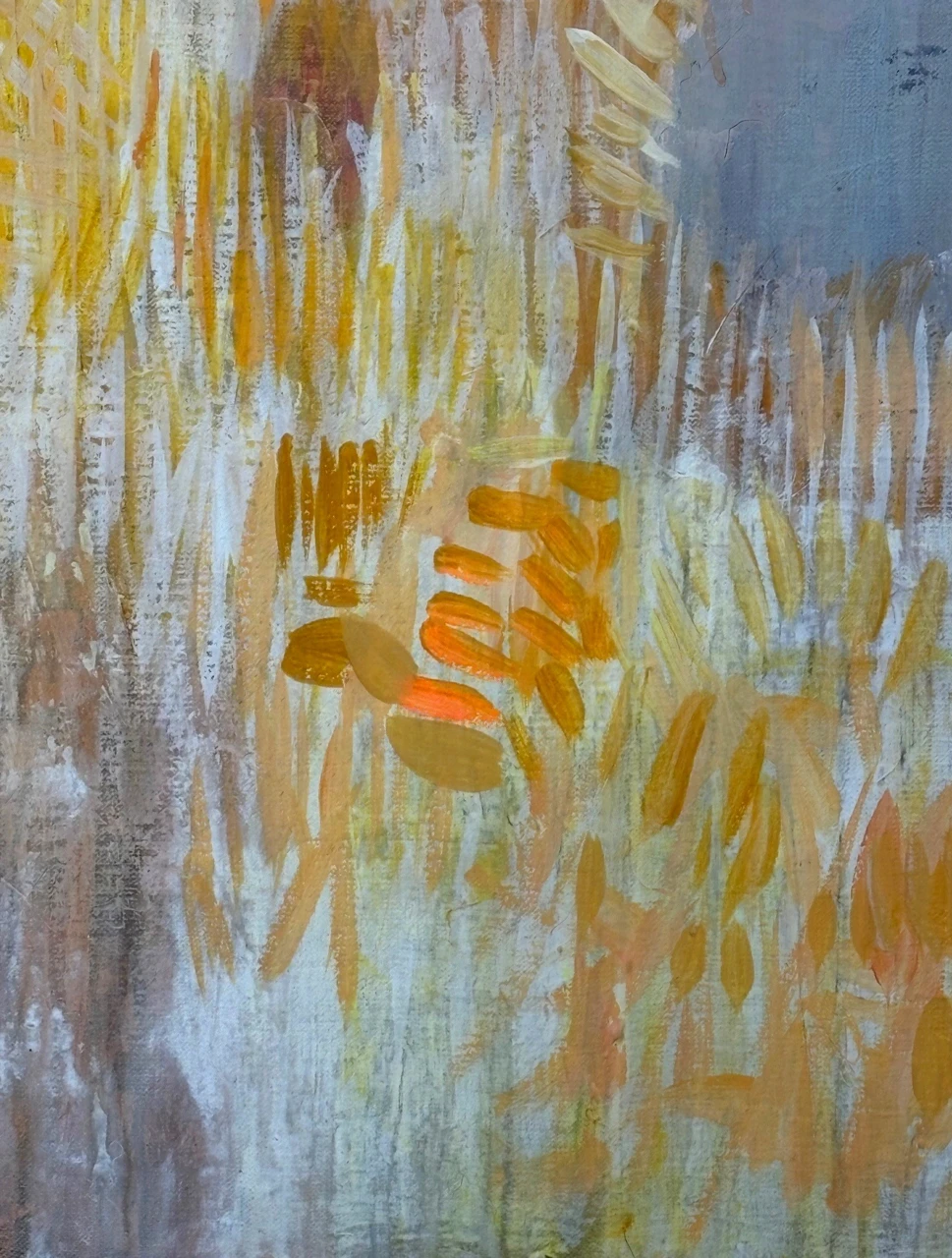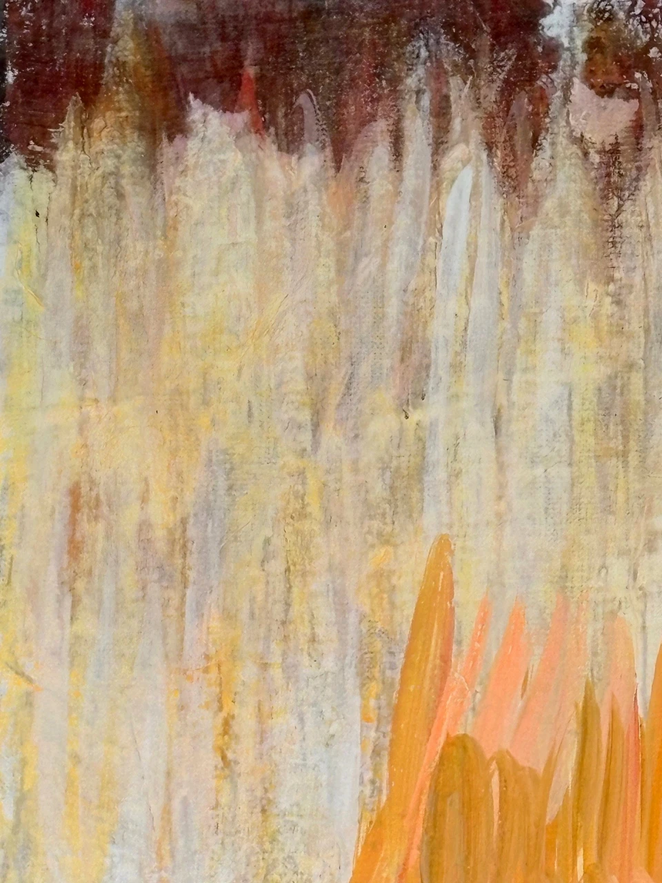 В работе используется техника многочисленных промывок медиума на водной основе: акрил, тушь, темпера.
