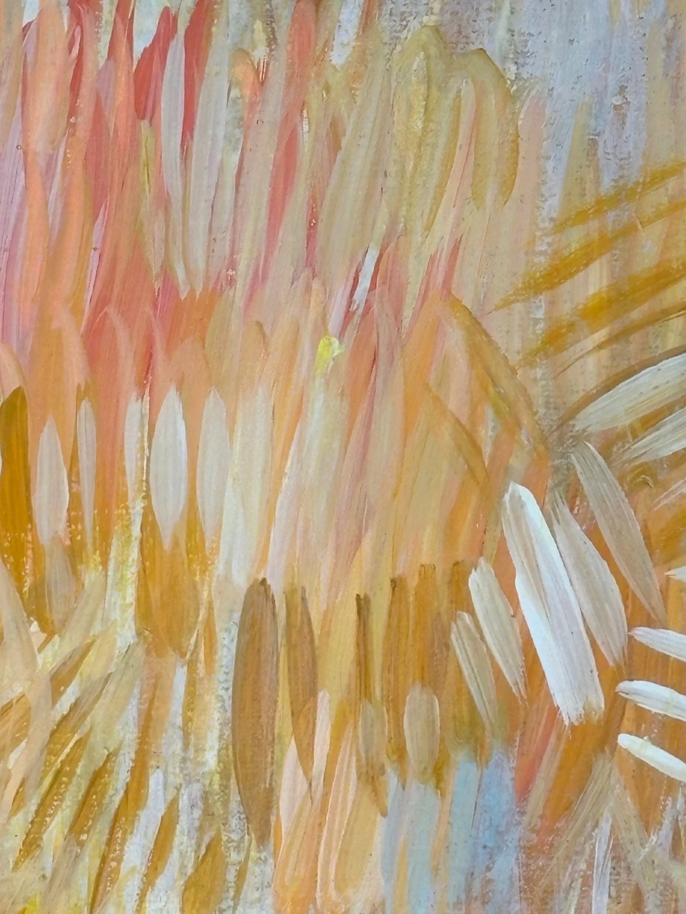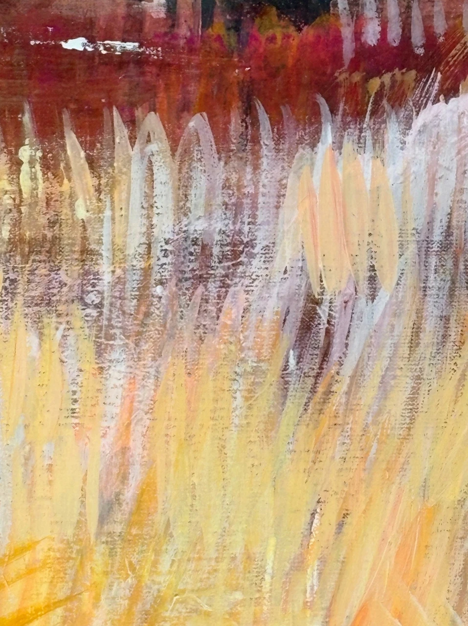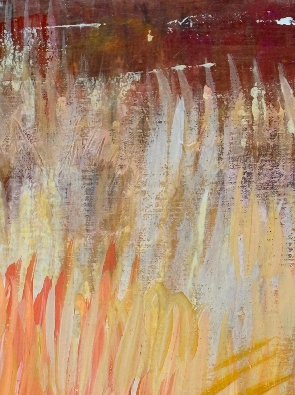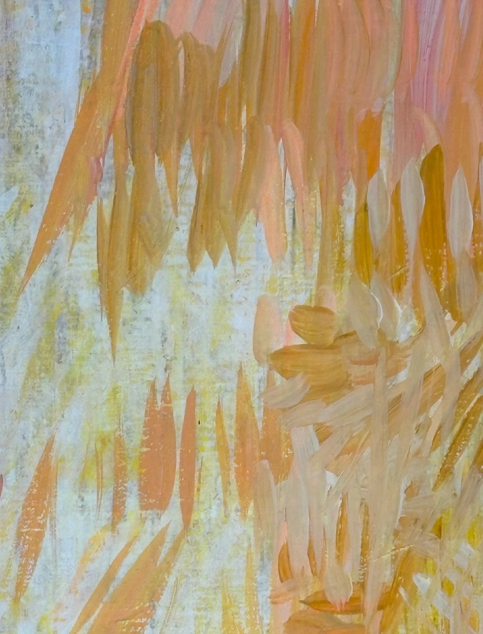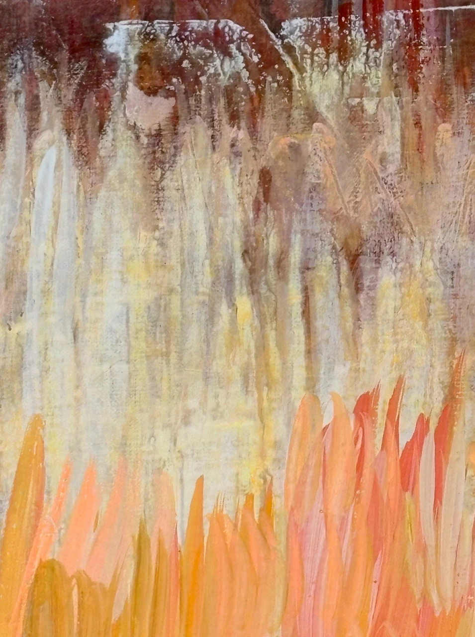 В работе используется техника многочисленных промывок медиума на водной основе: акрил, тушь, темпера.