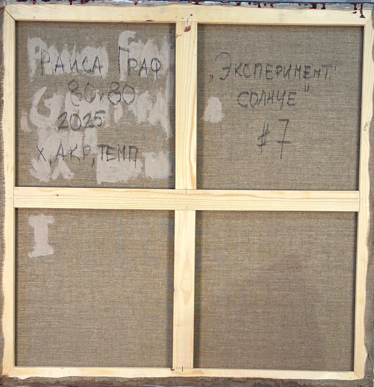 Серия "Эксперимент. Солнце" состоит из достаточно небольших работ. Создание одновременно пула работ дает возможность попробовать разные варианты техники. Их одновременность переопыляет замысел, делает почти все работы внутренне согласованными. В этой серии главным является желтый цвет (солнце). Часть работ солнце и свет, желтый на белом, часть показ солнечного света на контрасте, через тень.
