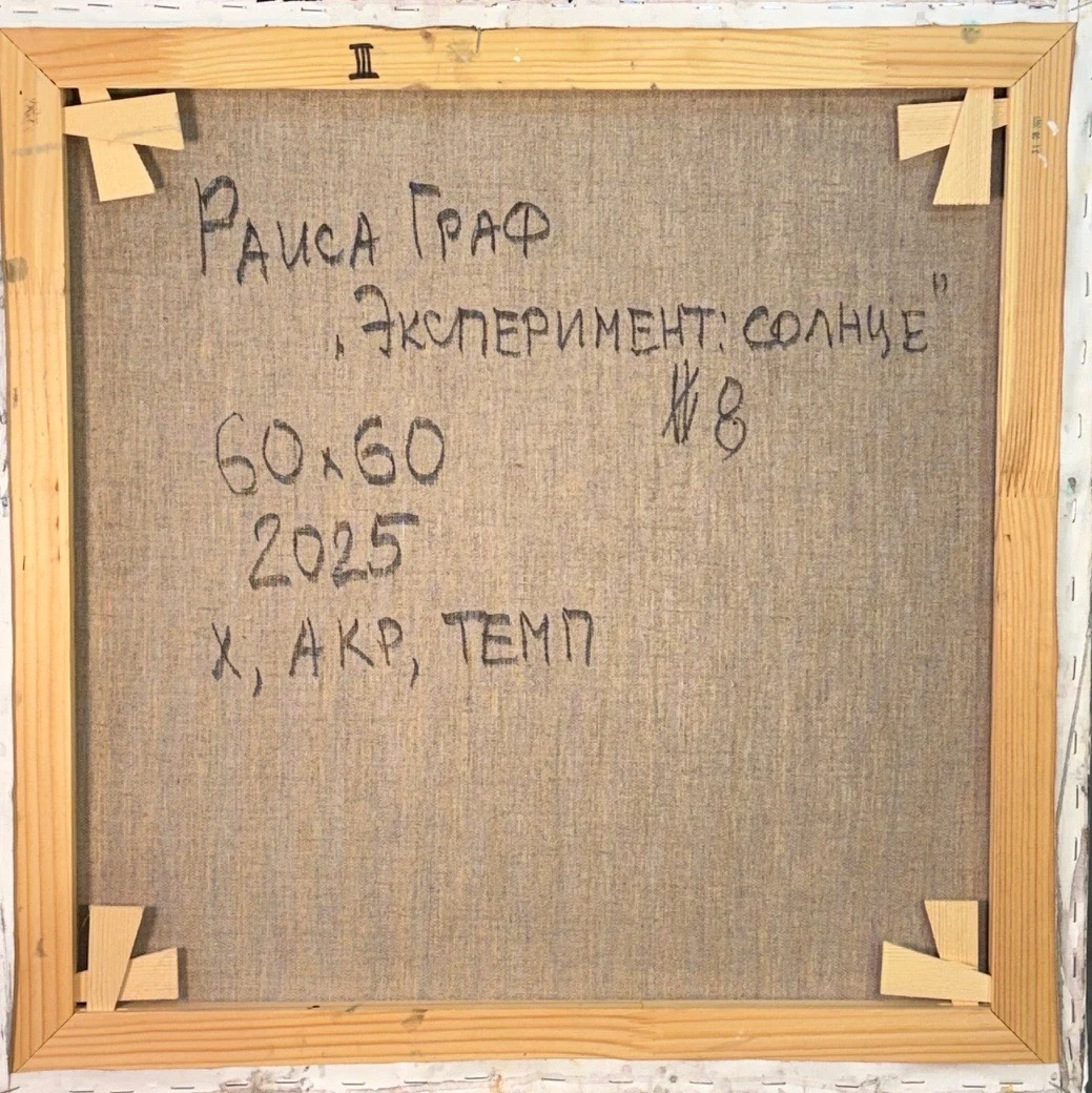 Серия "Эксперимент. Солнце" состоит из достаточно небольших работ. Создание одновременно пула работ дает возможность попробовать разные варианты техники. Их одновременность переопыляет замысел, делает почти все работы внутренне согласованными. В этой серии главным является желтый цвет (солнце). Часть работ солнце и свет, желтый на белом, часть показ солнечного света на контрасте, через тень.