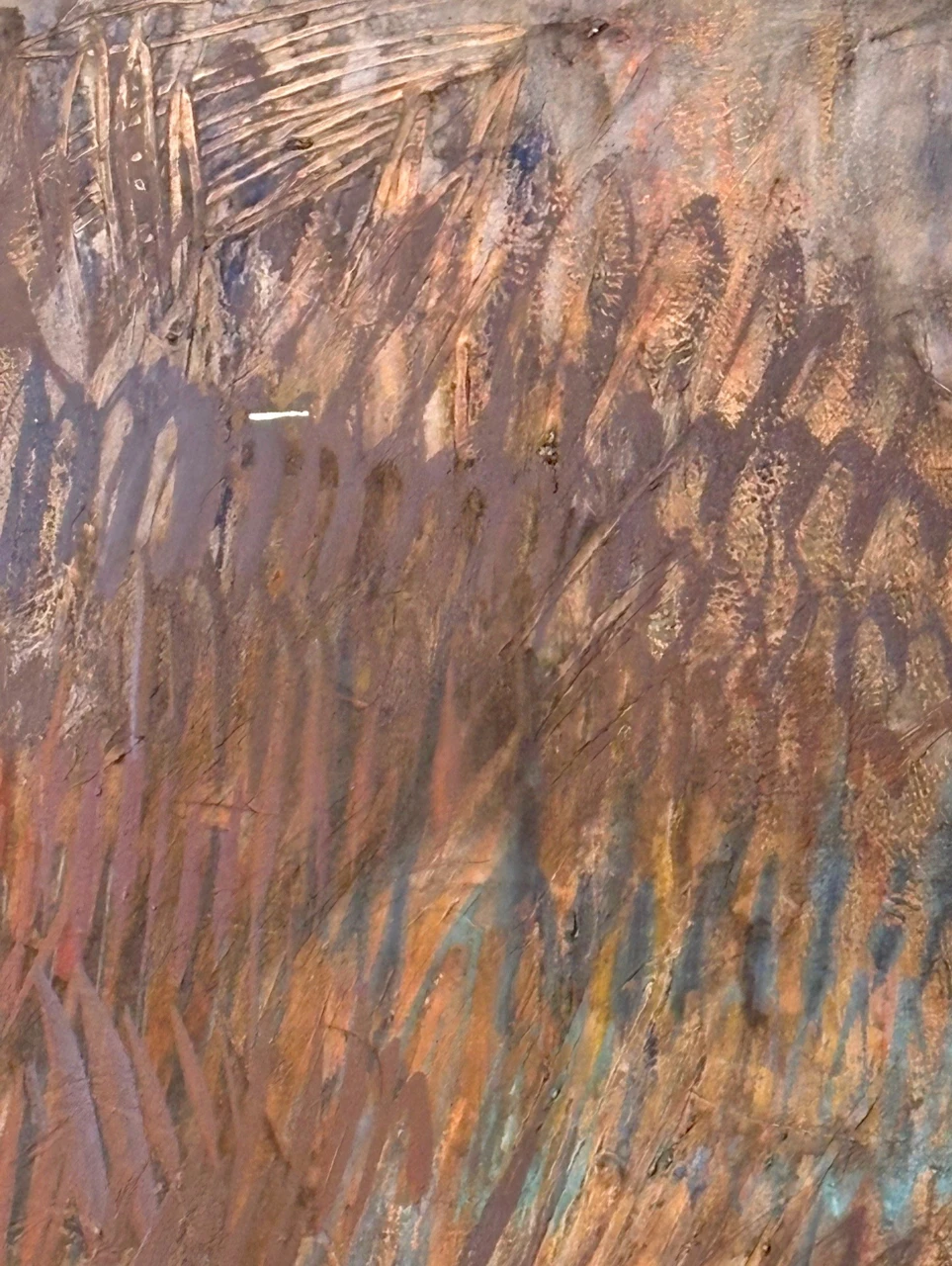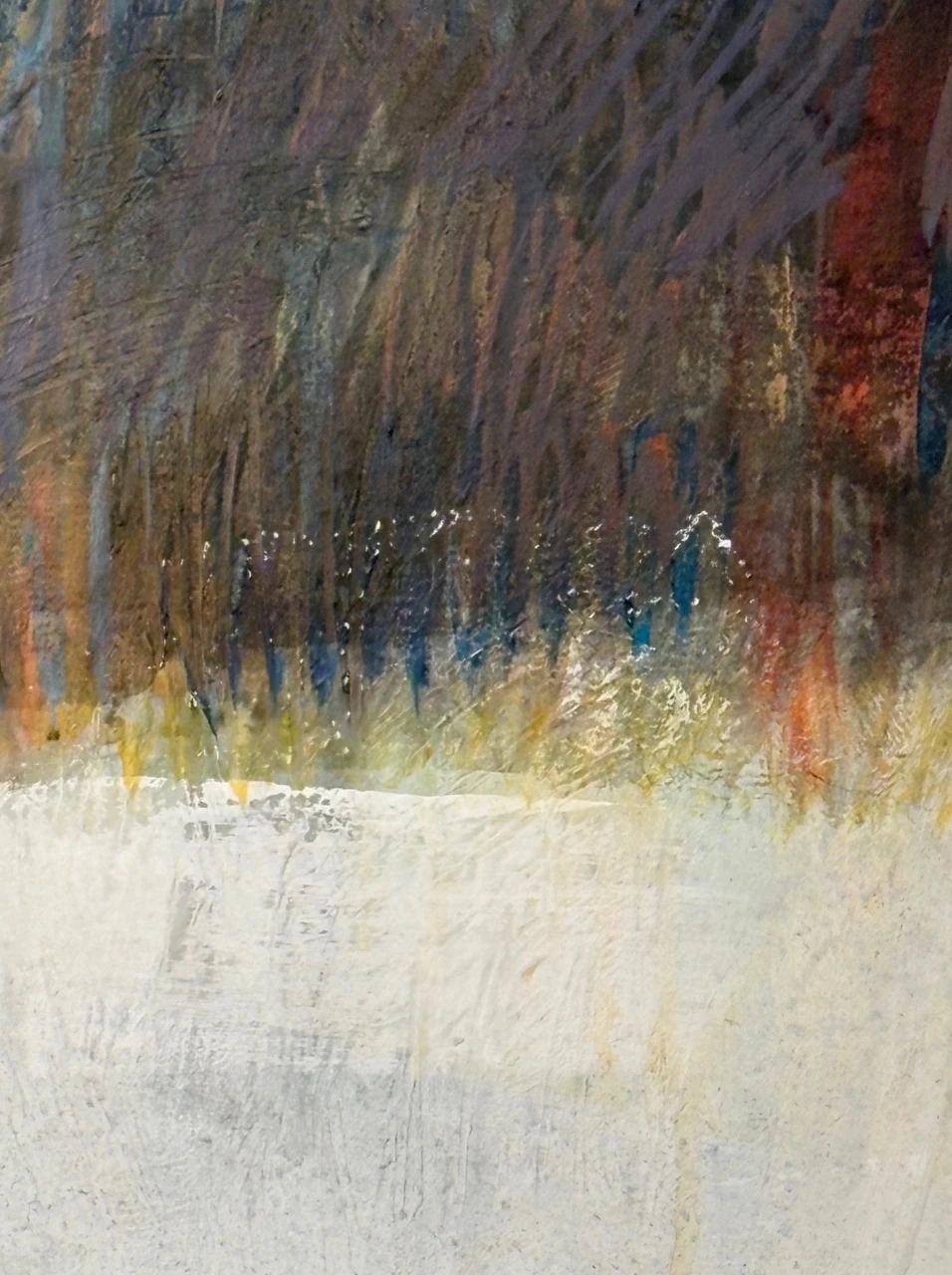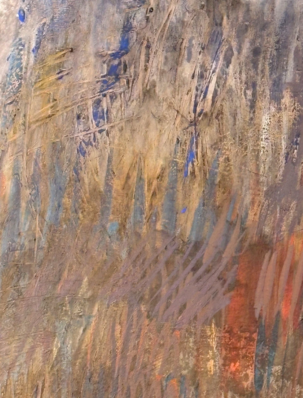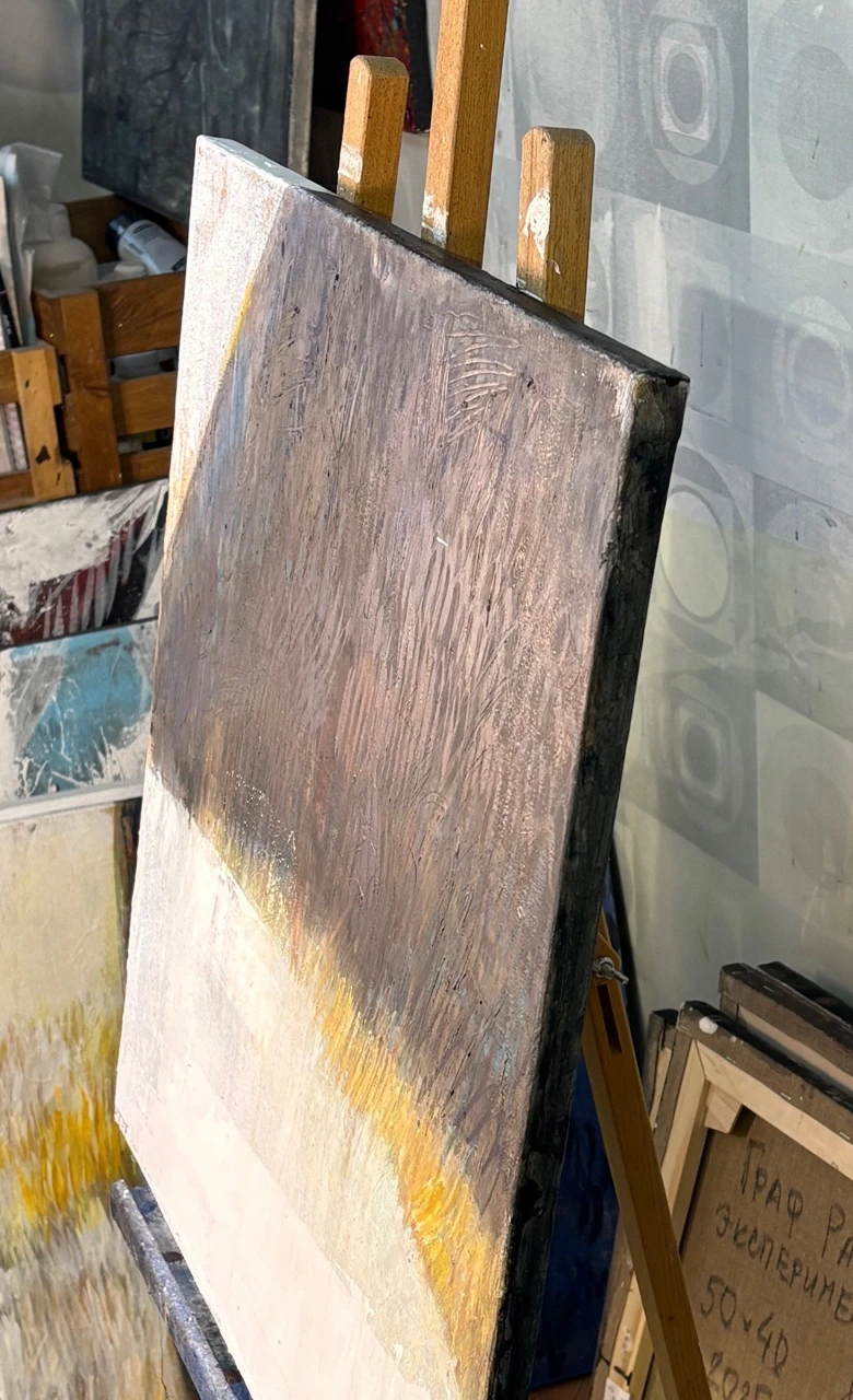 В работе используется техника многочисленных промывок медиума на водной основе: акрил, тушь, темпера.