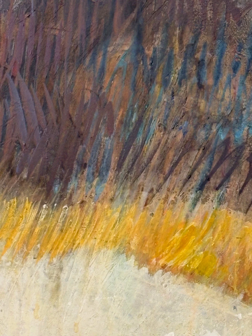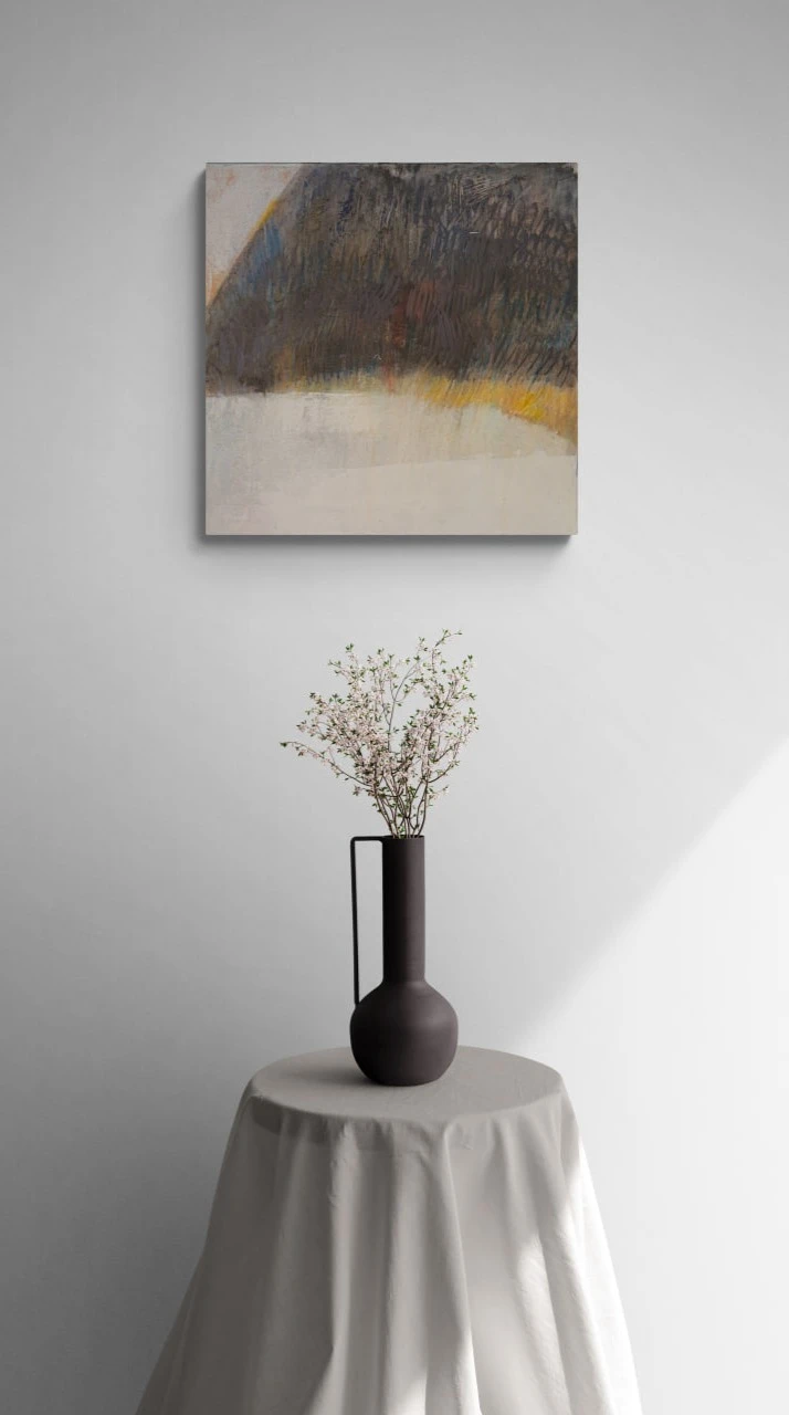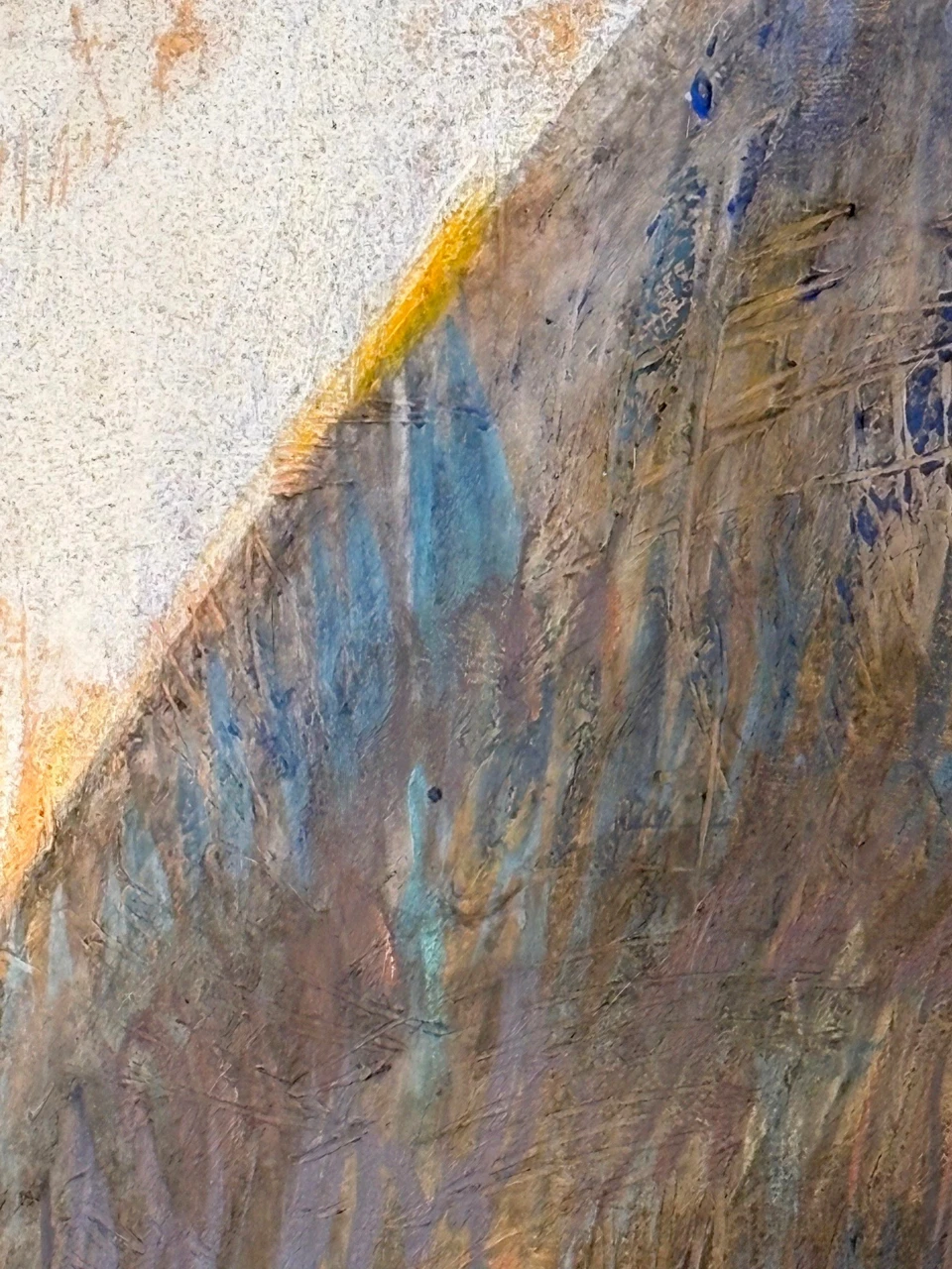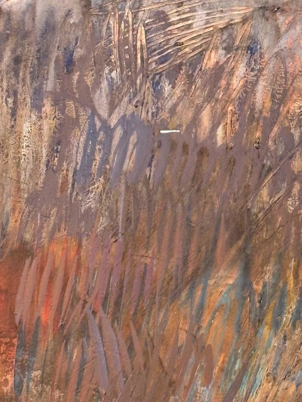 В работе используется техника многочисленных промывок медиума на водной основе: акрил, тушь, темпера.