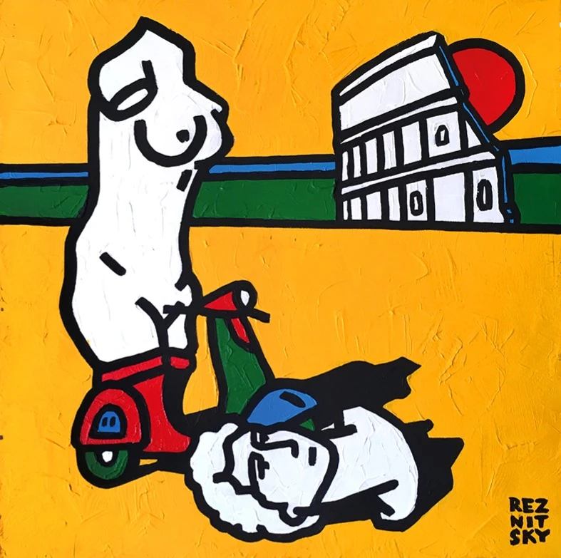 Роман Резницкий — художник, создающий визуальную философию. Он работает в стилях поп-арт и дот-арт. Первый стиль стал основой его бренда: яркие, философские, эротичные работы метафорично представляют суть современного общества.